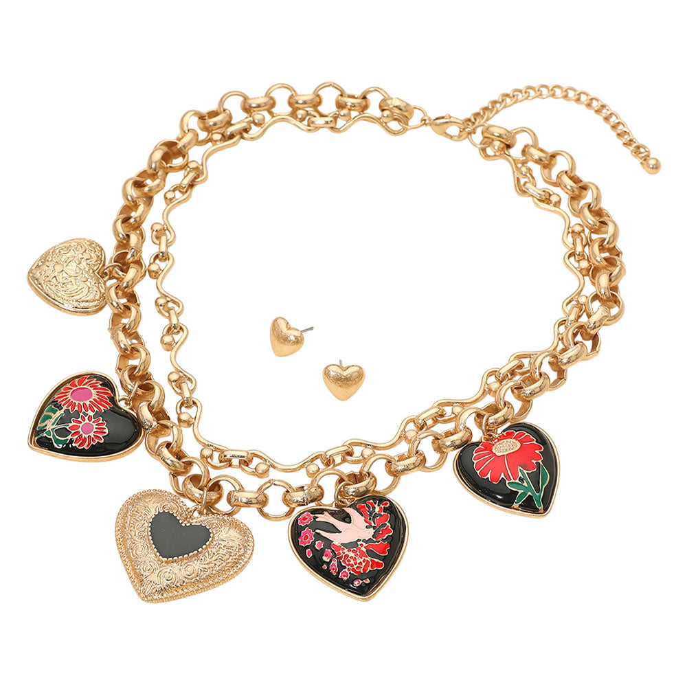 A bold layered chain set with mixed heart charms and standout details. Designed to make a strong statement and complete your look with ease.