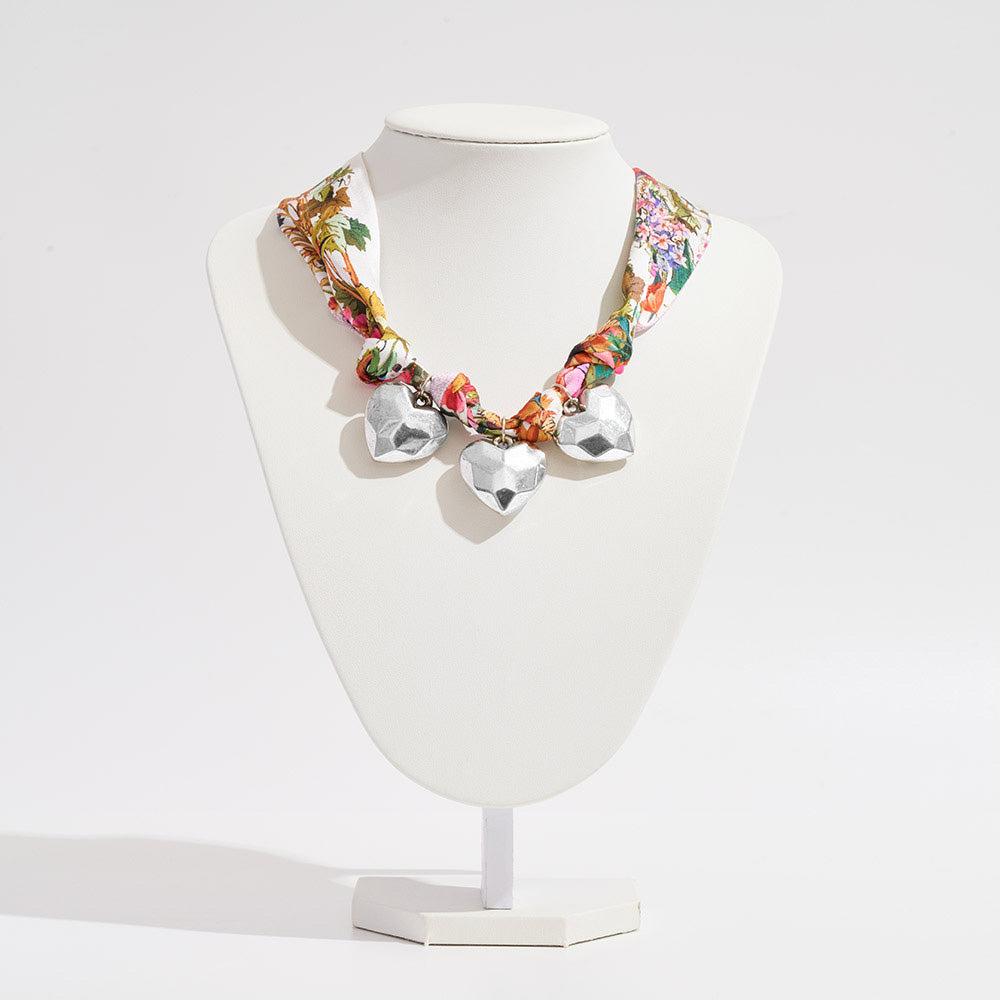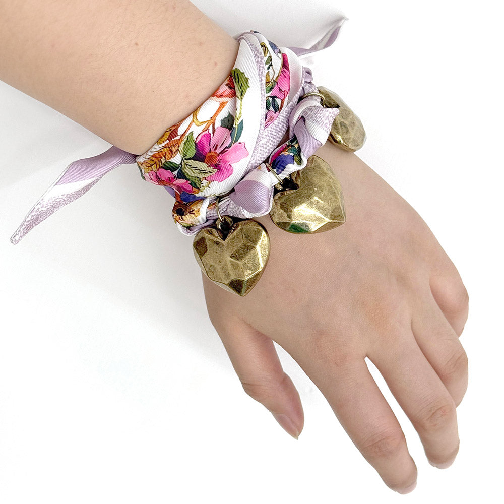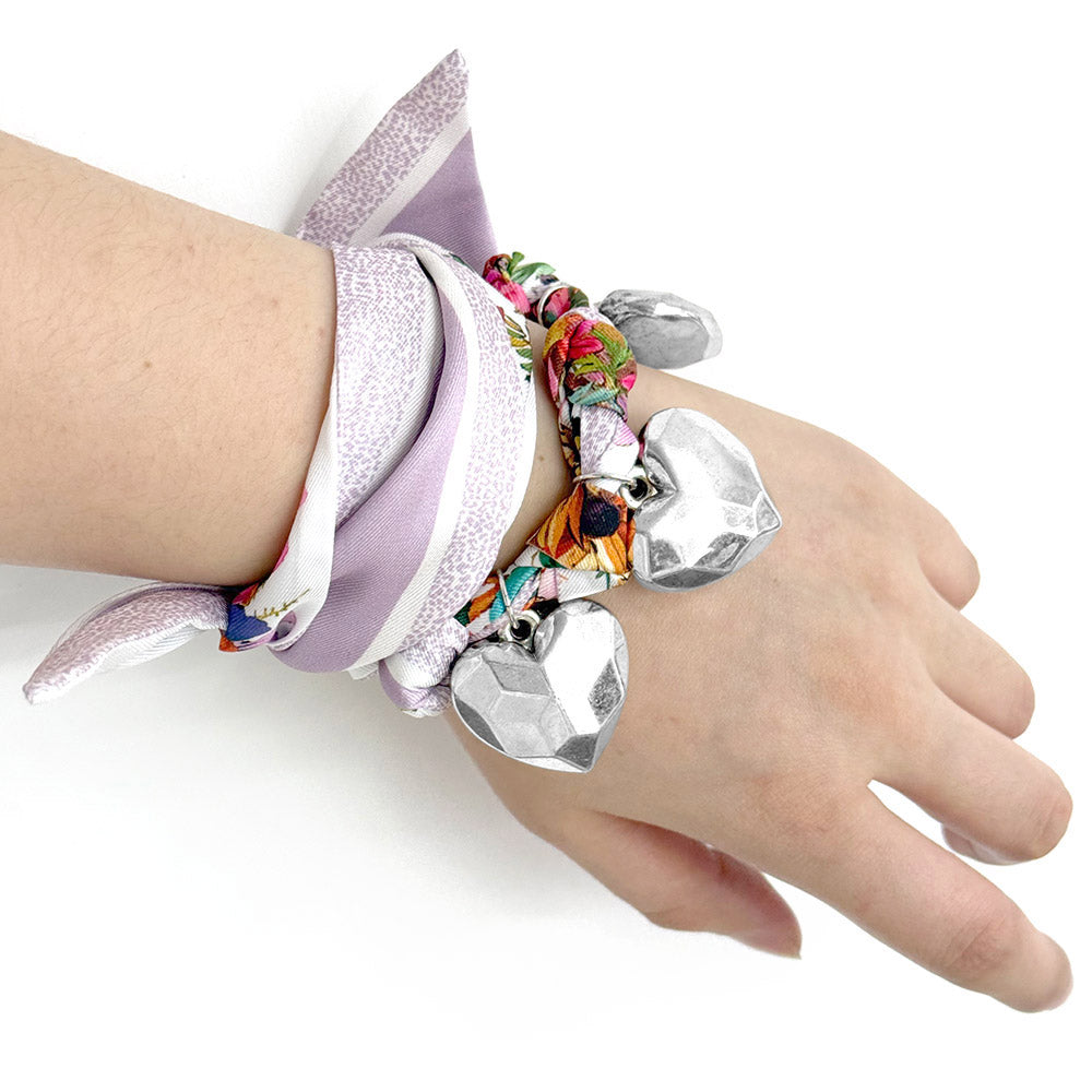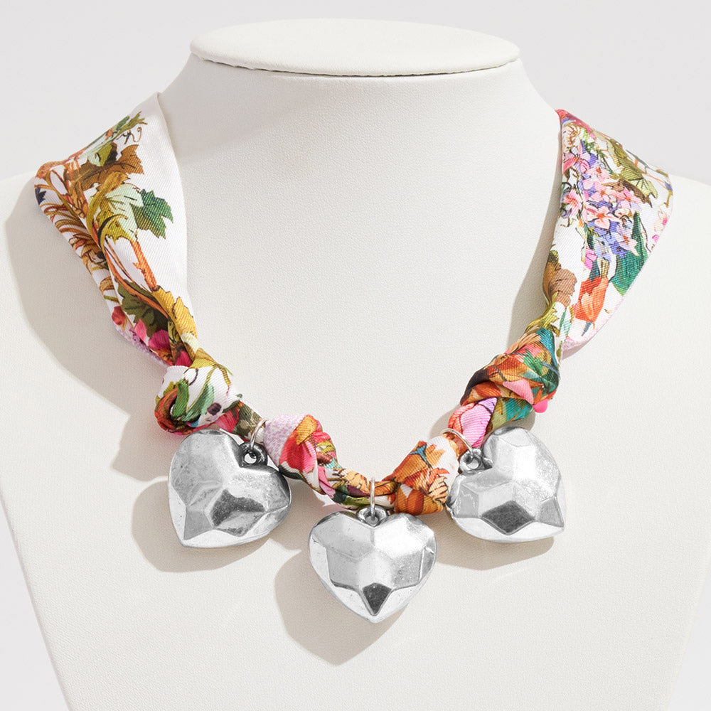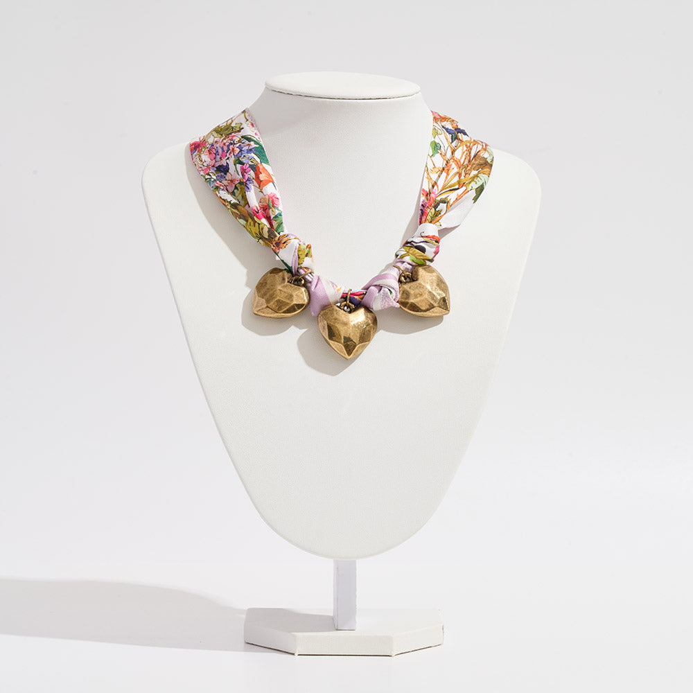 A versatile 3-in-1 accessory designed with three gold dipped puffy heart charms for a playful yet chic look. Wear it as a scarf necklace, adjust it as a bracelet, or style it as a trendy bag charm. Also available in white gold dipped.