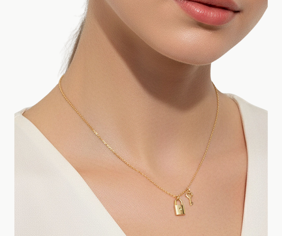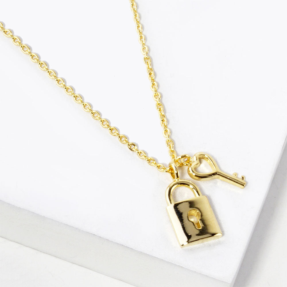 Add a meaningful touch to your jewelry collection with this gold dipped lock and key pendant necklace. Designed with a delicate lock and coordinating key charm, this piece symbolizes connection and timeless style. With its polished finish and versatile design, it’s perfect for everyday wear or layering with your favorite necklaces for a personalized look.
