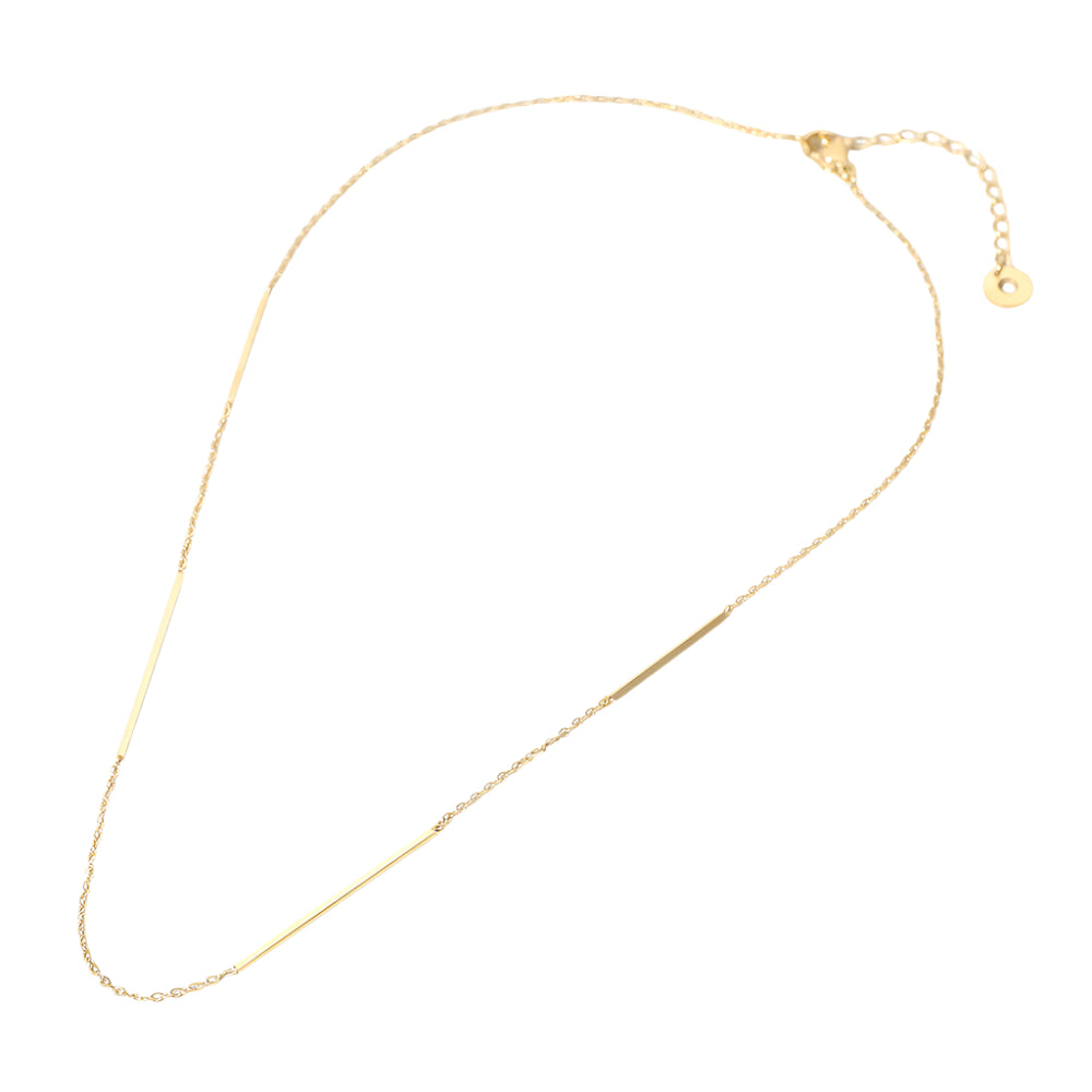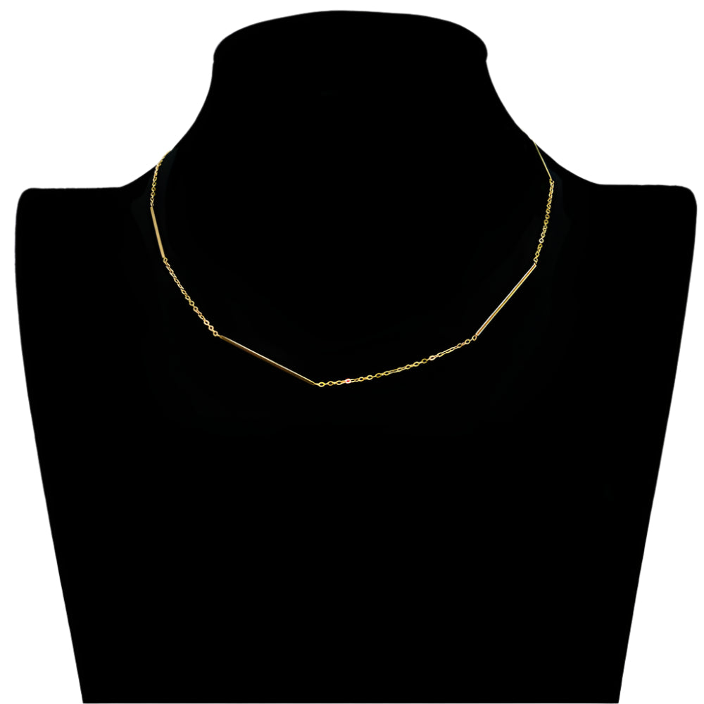 Minimalist bead bar chain necklace crafted from stainless steel for lasting shine and strength. Features delicate bead accents along a sleek chain—perfect for layering or wearing solo. Available in gold or silver.