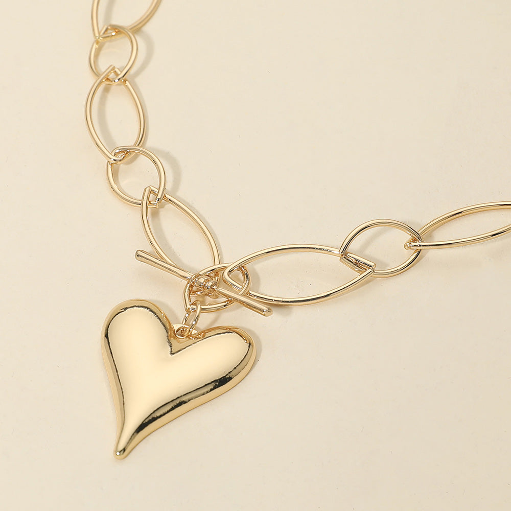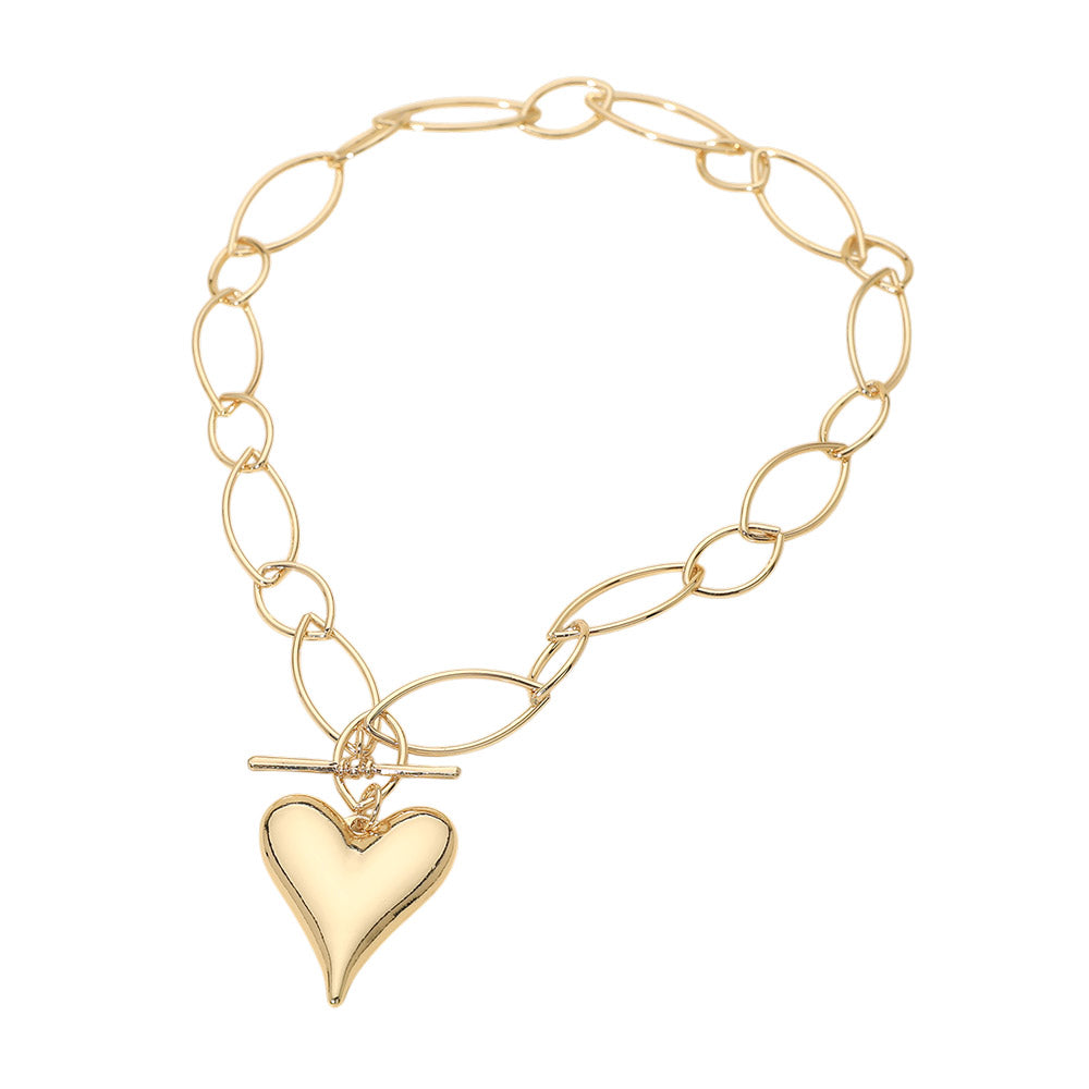 Add a touch of classic charm with this heart pendant oval link toggle chain necklace. Featuring a delicate heart pendant suspended from a stylish oval link chain with a toggle closure, this necklace blends elegance with modern simplicity. Perfect for layering or wearing alone, it’s a versatile piece for everyday wear or special occasions. Available in gold or silver.