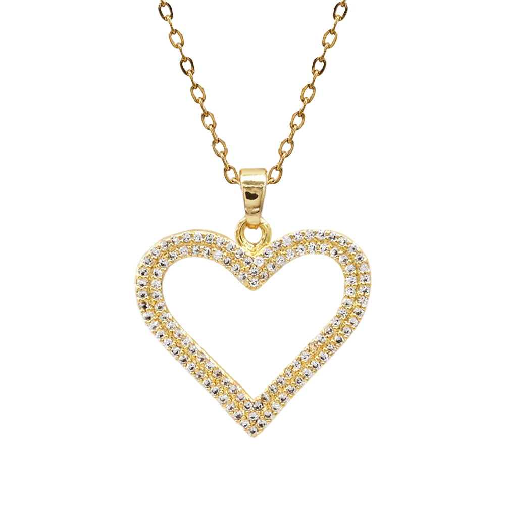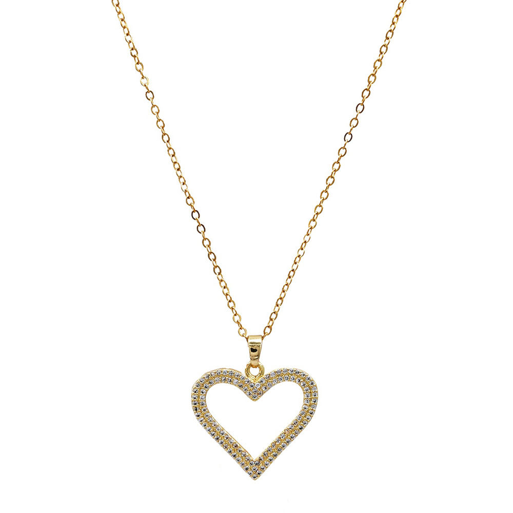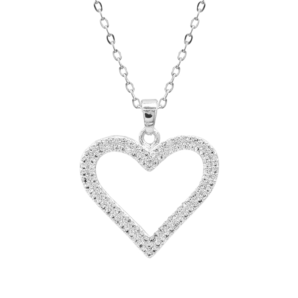 This stainless steel necklace features an open heart pendant paved with sparkling cubic zirconia stones. Durable and stylish, it’s a timeless piece that shines with both simplicity and meaning—perfect for everyday wear or gifting.