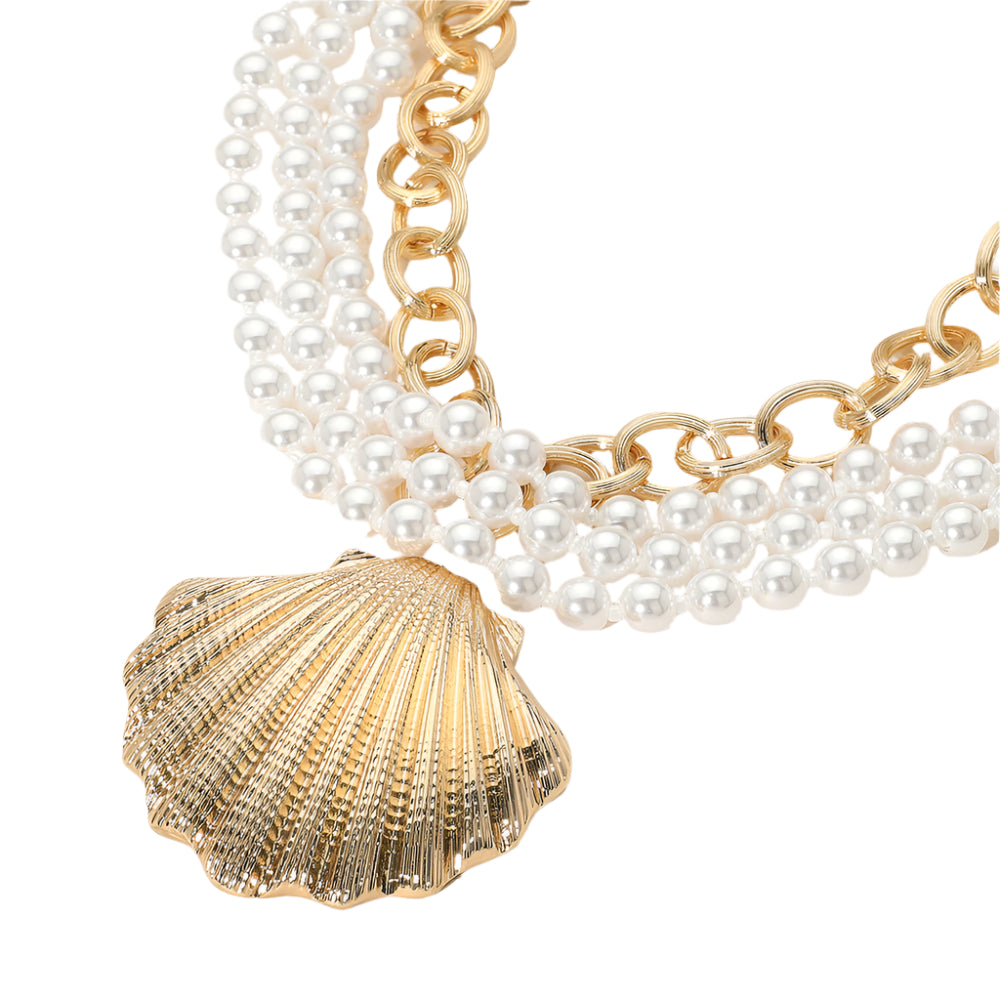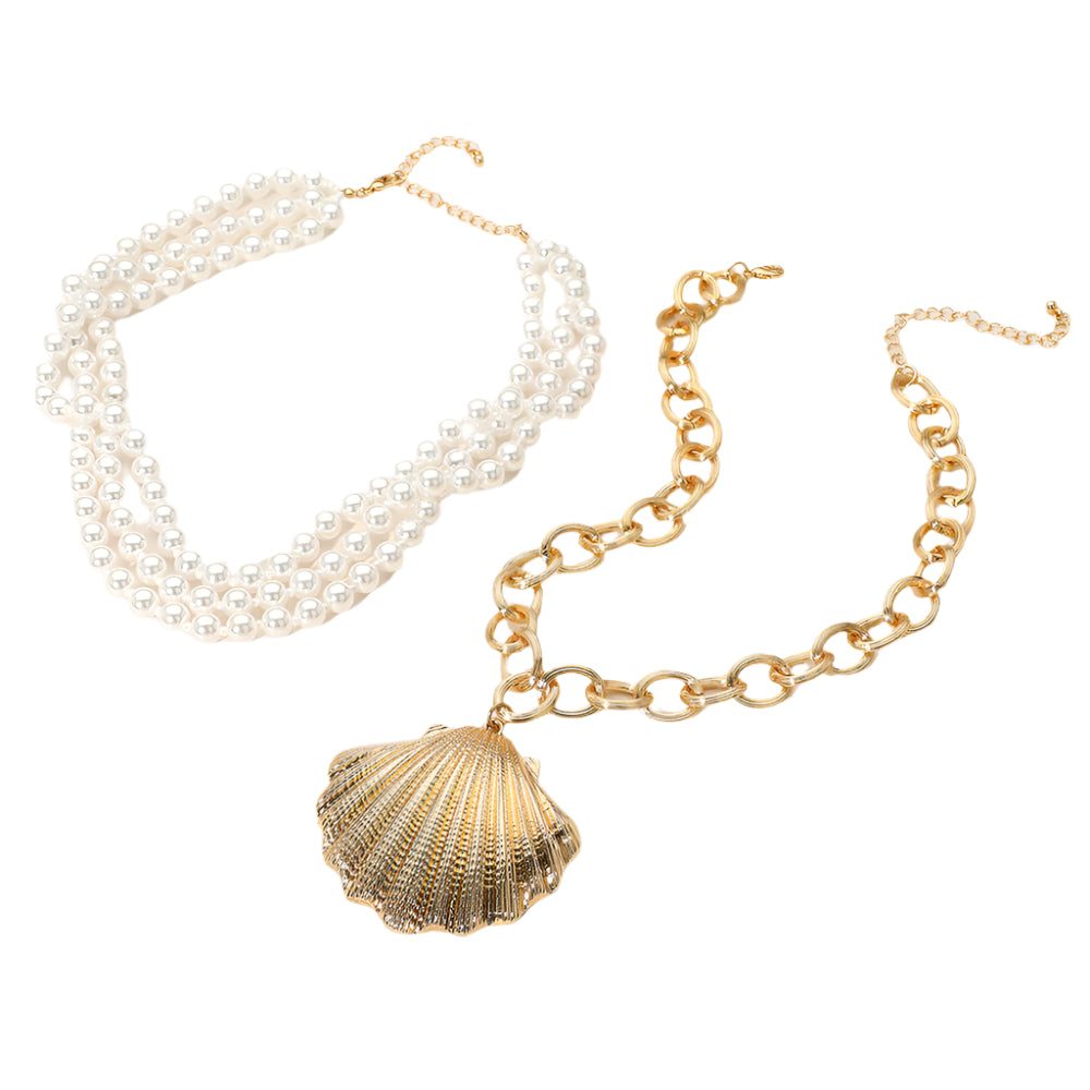 Bring a touch of coastal charm to your style with this 2-piece layered necklace set featuring pearl beads and a textured metal shell pendant. Effortlessly pairs with both casual and dressy looks for a fresh, seaside-inspired vibe.