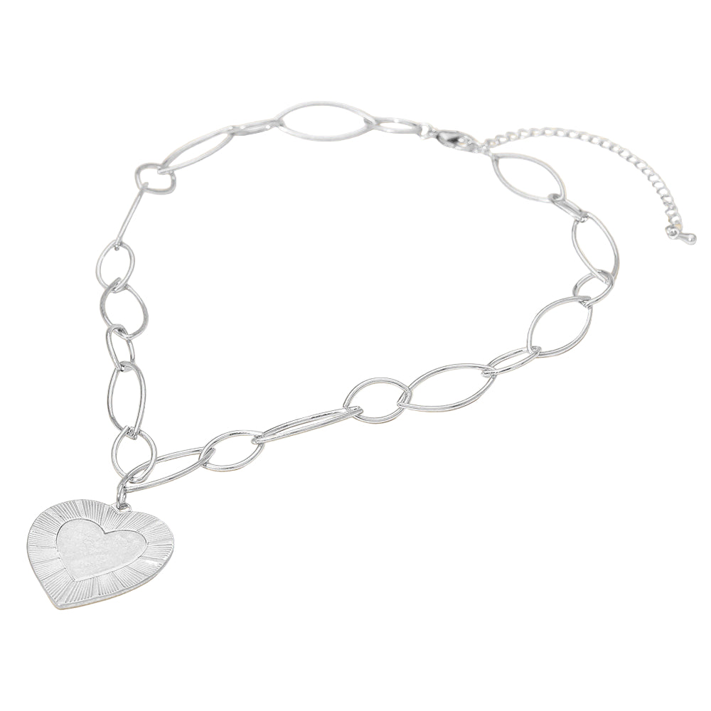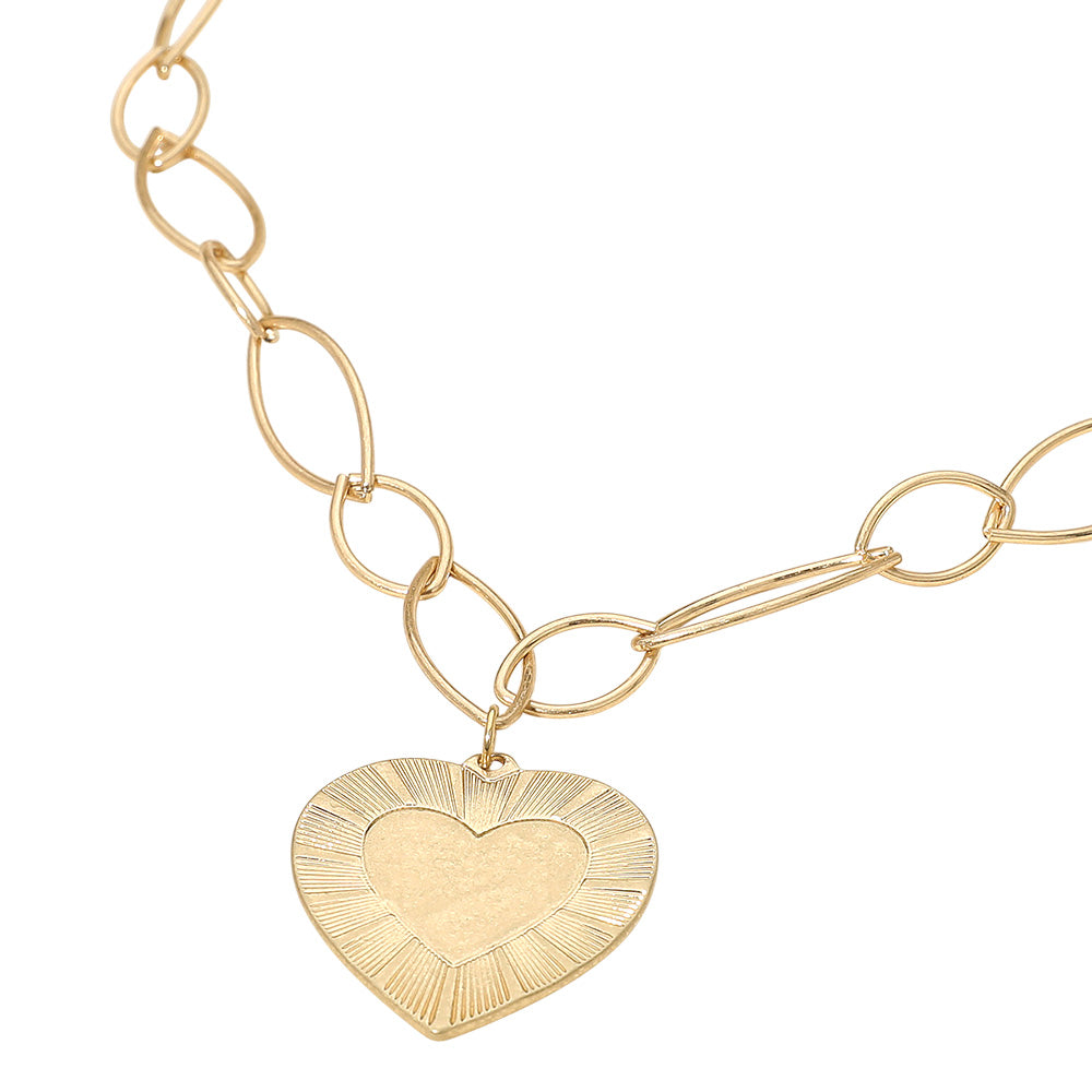 Bold Textured Heart Pendant Oval Link Chain Necklace in gold or silver features a striking heart pendant with a textured finish on a chunky oval link chain. Perfect for adding a modern statement to any look.