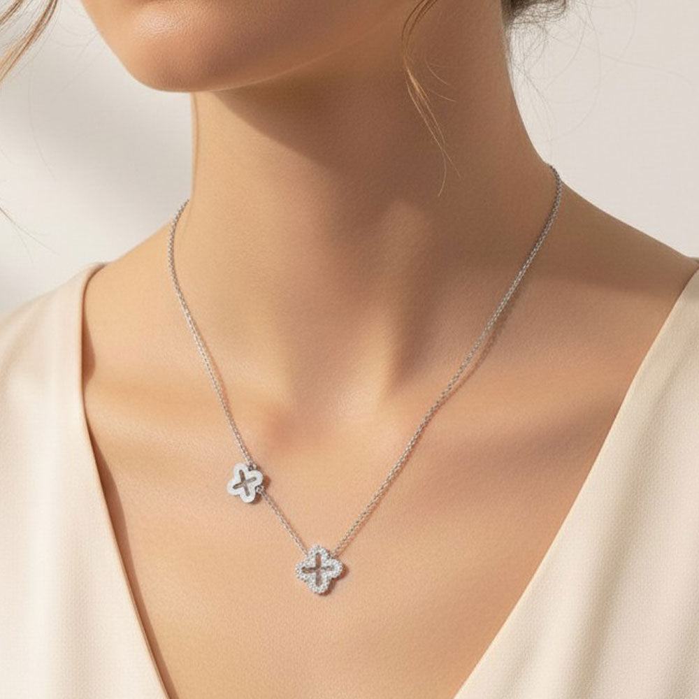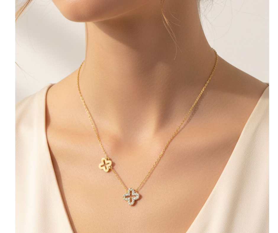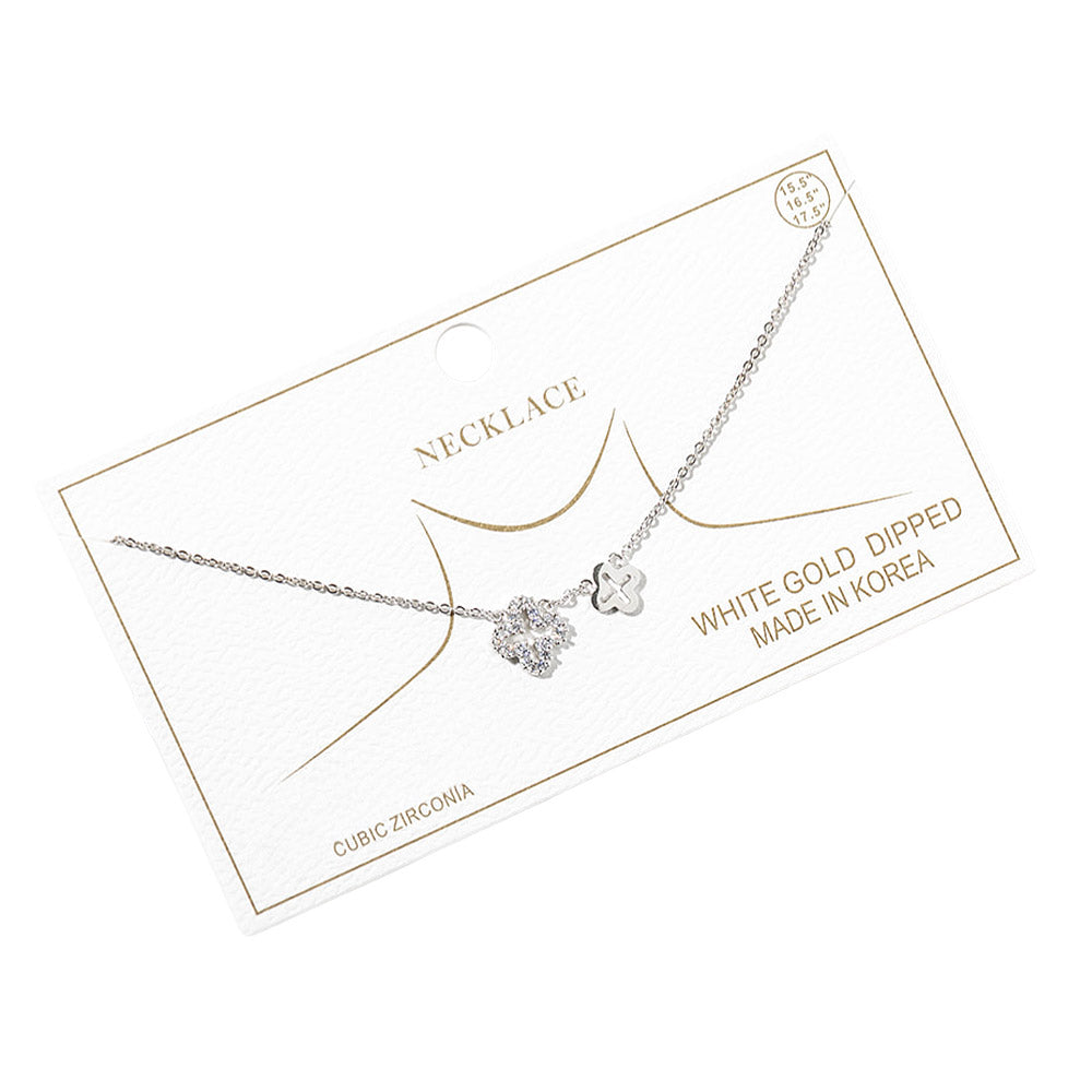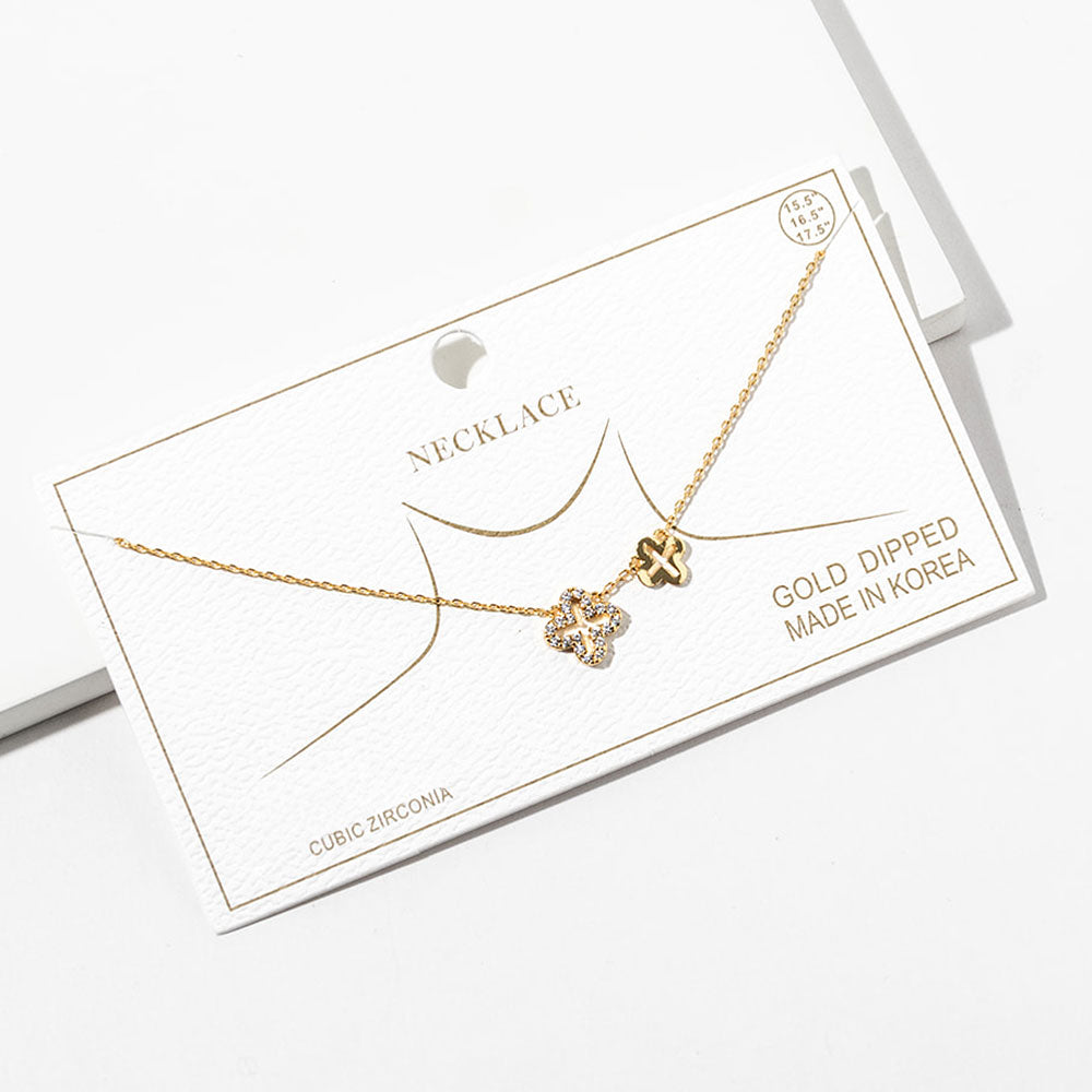 Classic with a modern touch, this gold dipped cubic zirconia quatrefoil pendant necklace features a beautifully shaped quatrefoil design accented with shimmering stones. The clean silhouette paired with subtle sparkle creates a polished and versatile look. Perfect for everyday wear or layering with your favorite pieces, this necklace adds refined shine to any outfit.