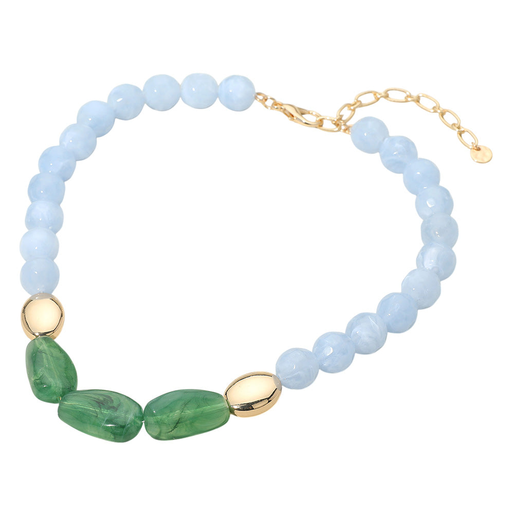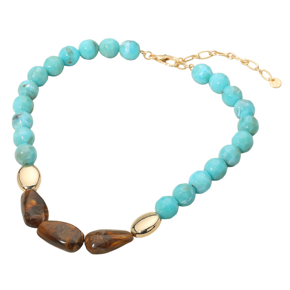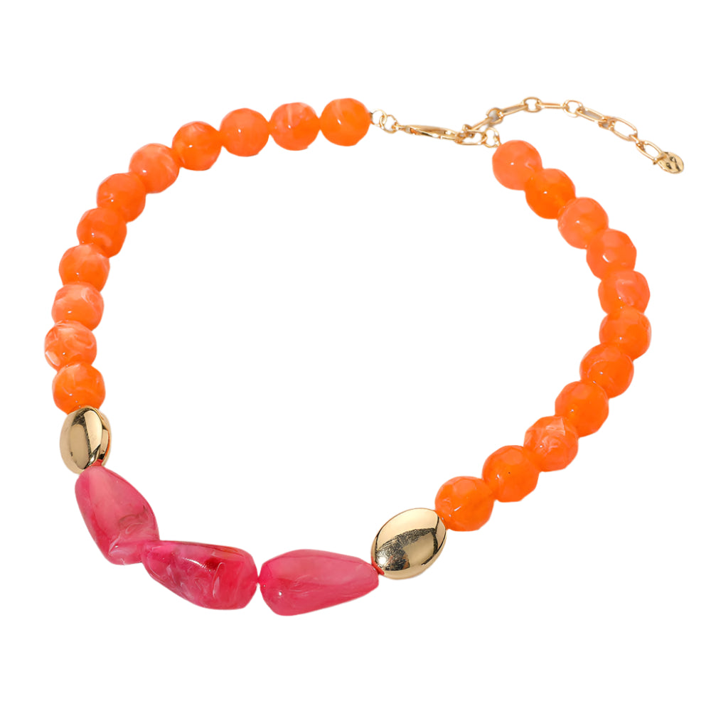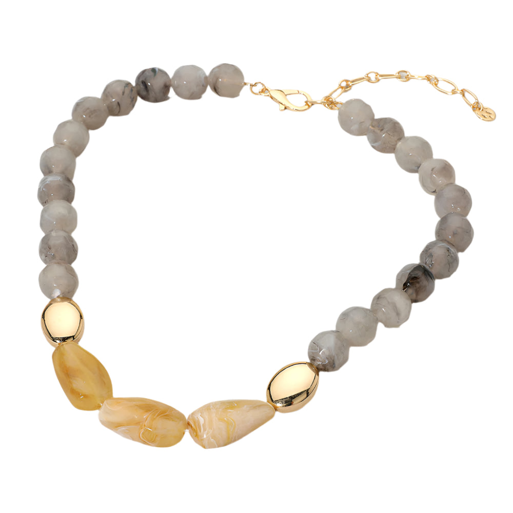 Triple Center Stones Marble Faceted Beaded Chunky Necklace featuring bold, faceted marble-style beads and three standout center stones. A statement piece with texture and depth that adds instant style to any outfit. Lightweight yet impactful for day or night wear.