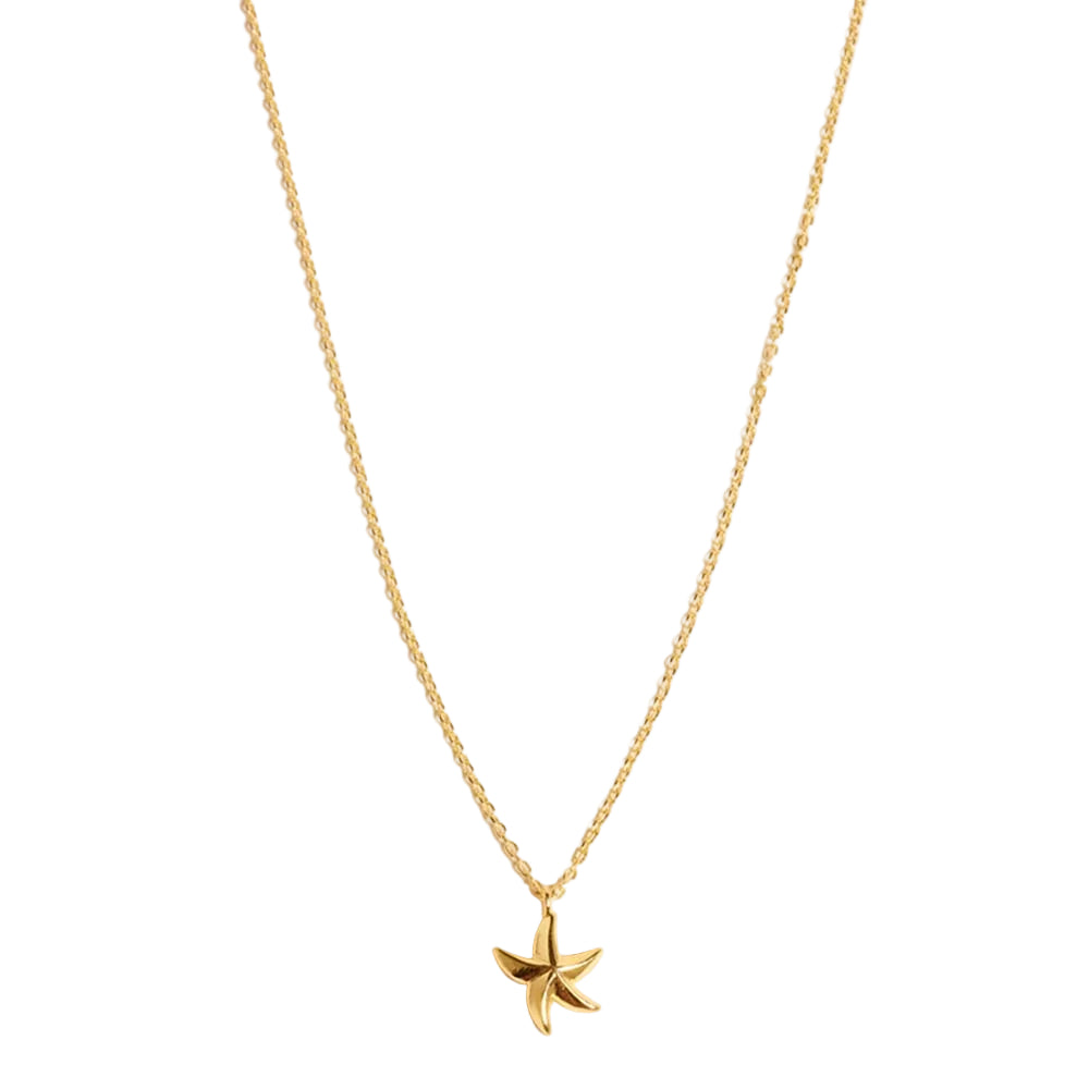 Gold dipped starfish pendant necklace, hypoallergenic. Features a delicate starfish design inspired by seaside days and ocean breezes. Lightweight and easy to wear, perfect on its own or layered with other necklaces.