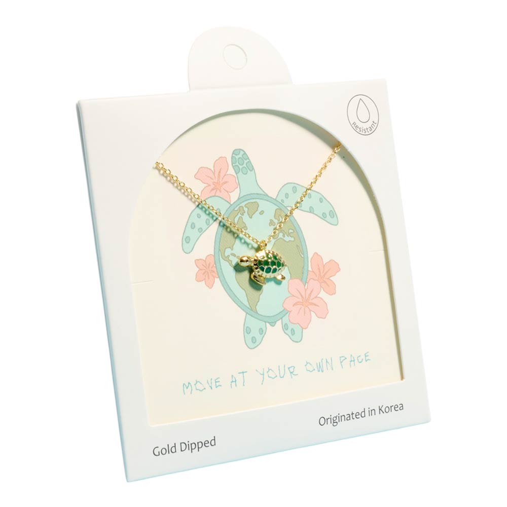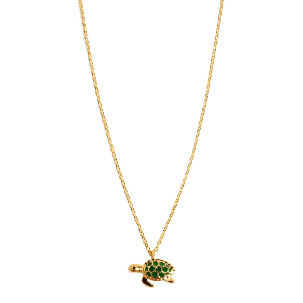 Gold dipped sea turtle pendant necklace, hypoallergenic. Features a charming sea turtle design inspired by the ocean, perfect for adding a playful touch to any outfit. Lightweight and versatile, ideal for layering or wearing on its own for a subtle statement.