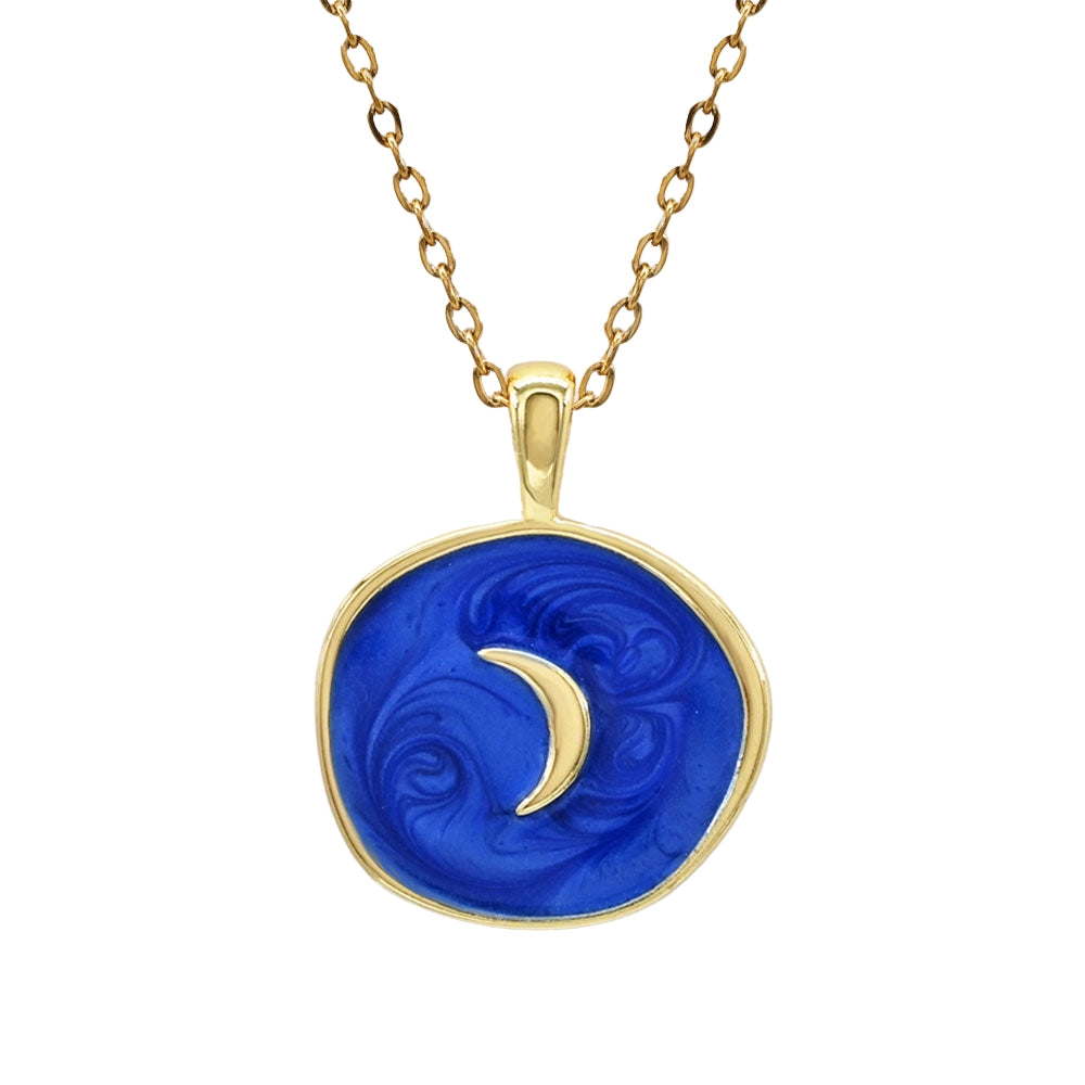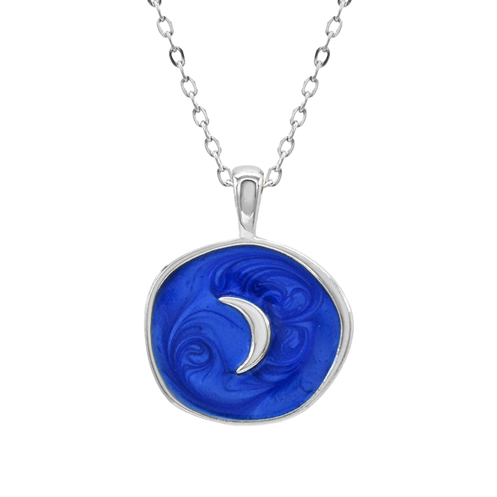 Chic necklace showcasing a crescent moon pendant placed over a swirl-patterned backdrop, bringing a celestial-inspired design that merges graceful detail with contemporary flair for versatile wear.