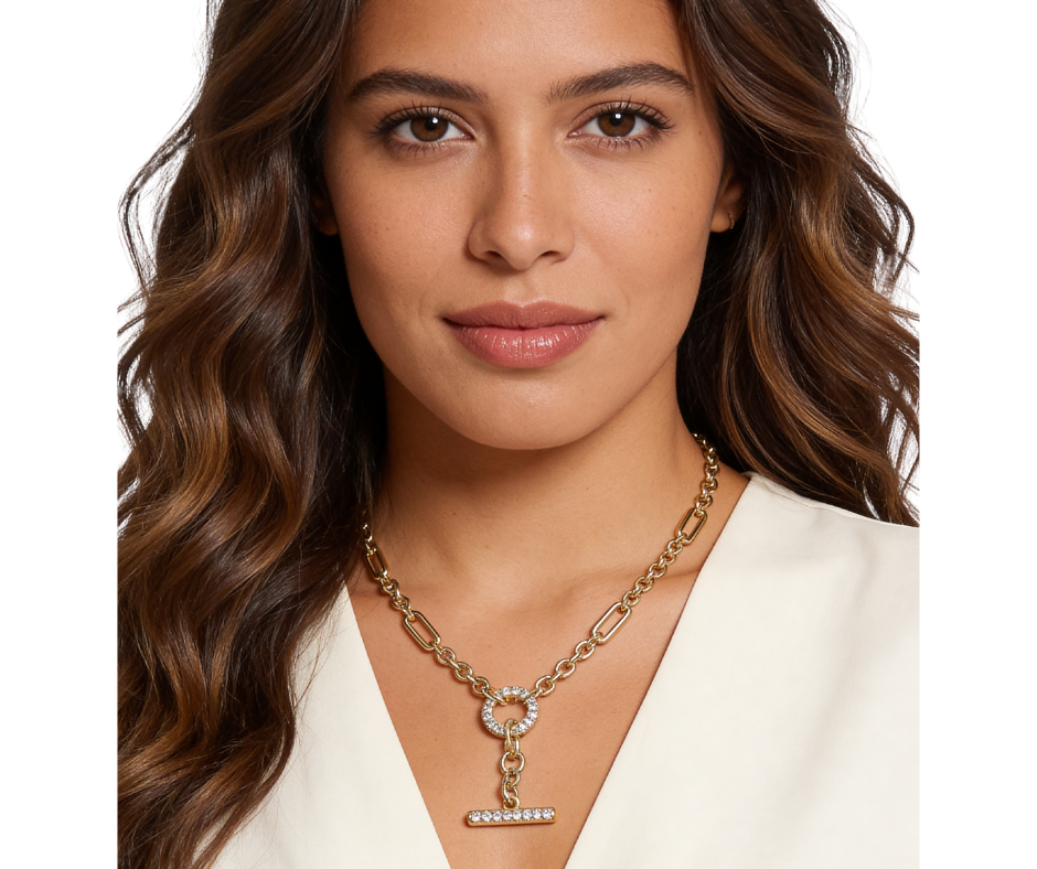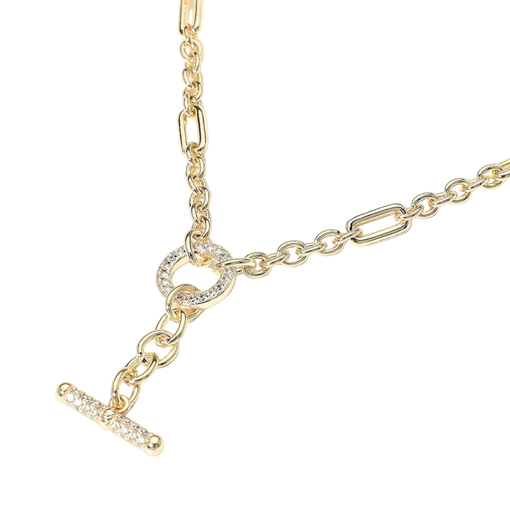 This chunky chain necklace features a polished toggle accent with cubic zirconia pave detailing for a touch of sparkle. A bold yet clean style that stands out on its own or layers easily with your favorites.
