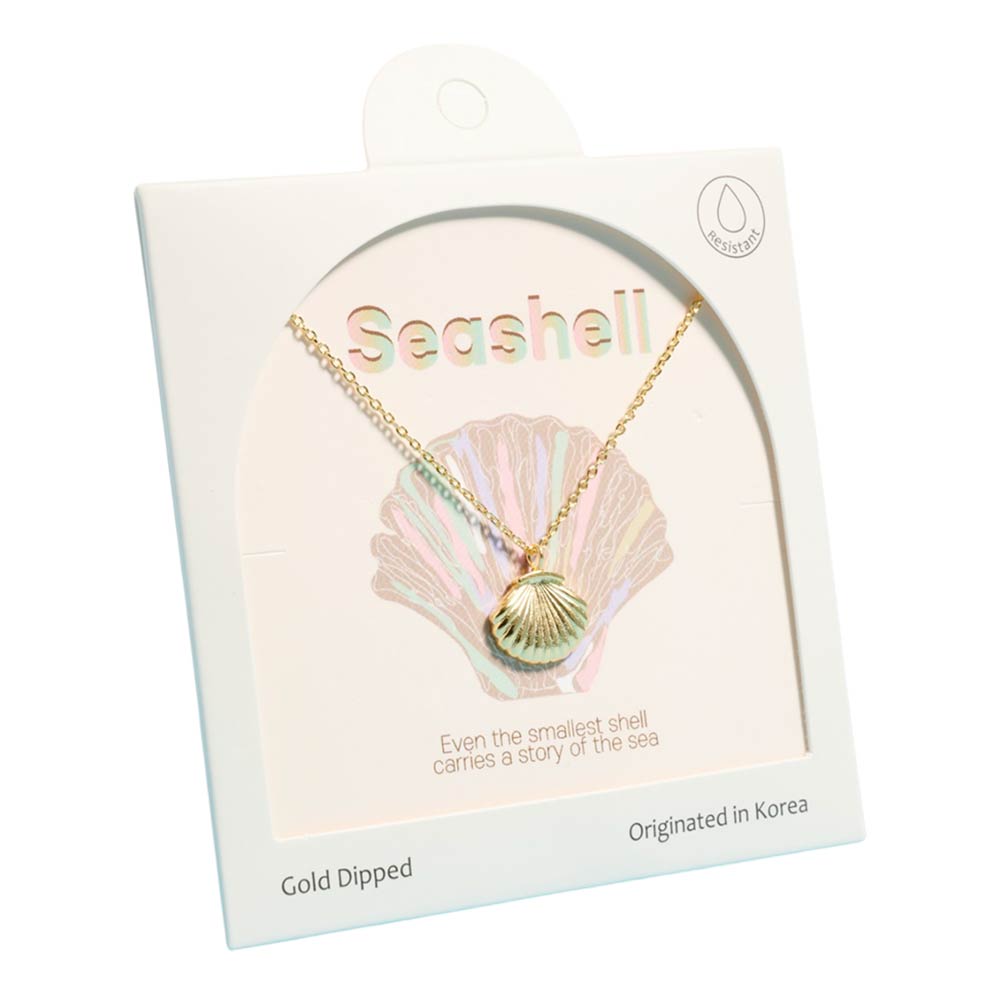 Gold dipped seashell pendant necklace, hypoallergenic. Designed with a classic shell silhouette that brings a soft coastal feel to your look. Lightweight and comfortable, ideal for everyday wear or layering with your favorite chains.