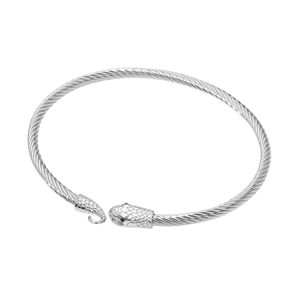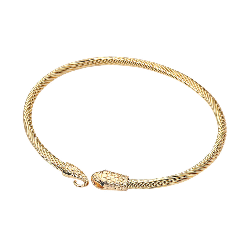 Designed with a sleek twisted metal style, this snake choker necklace brings a bold, edgy look. Available in gold or silver, it’s a standout piece that adds modern flair whether worn alone or layered.
