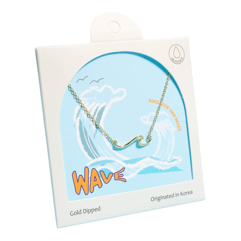 Gold dipped minimal wave pendant necklace, hypoallergenic. A simple, ocean-inspired design perfect for everyday wear. Lightweight and versatile, ideal for layering or wearing on its own.