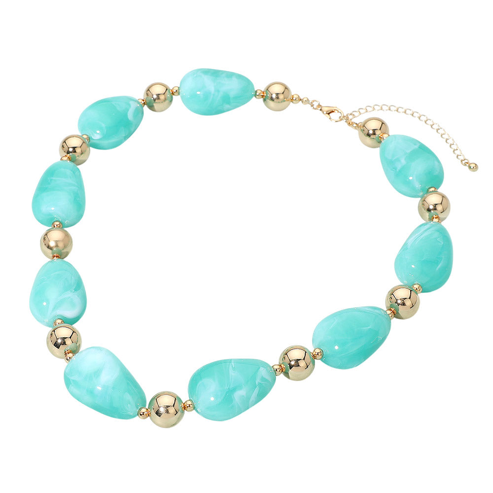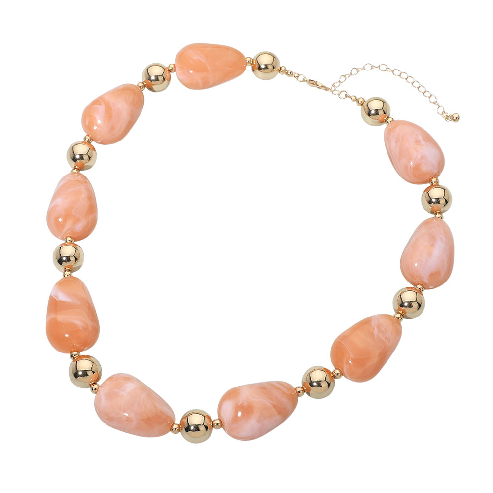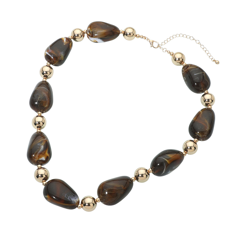 Chunky resin marbled pebble beaded necklace. Designed with bold marbled beads that create a textured, eye-catching look. A statement style that adds instant interest to both casual and dressy outfits.
