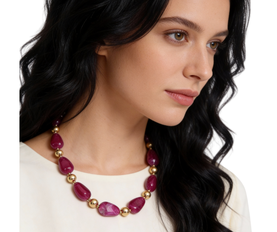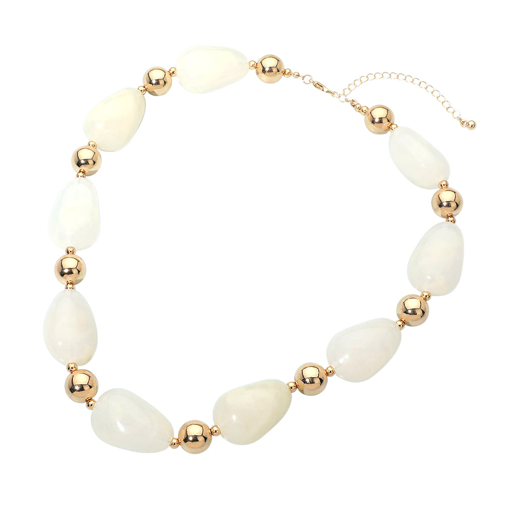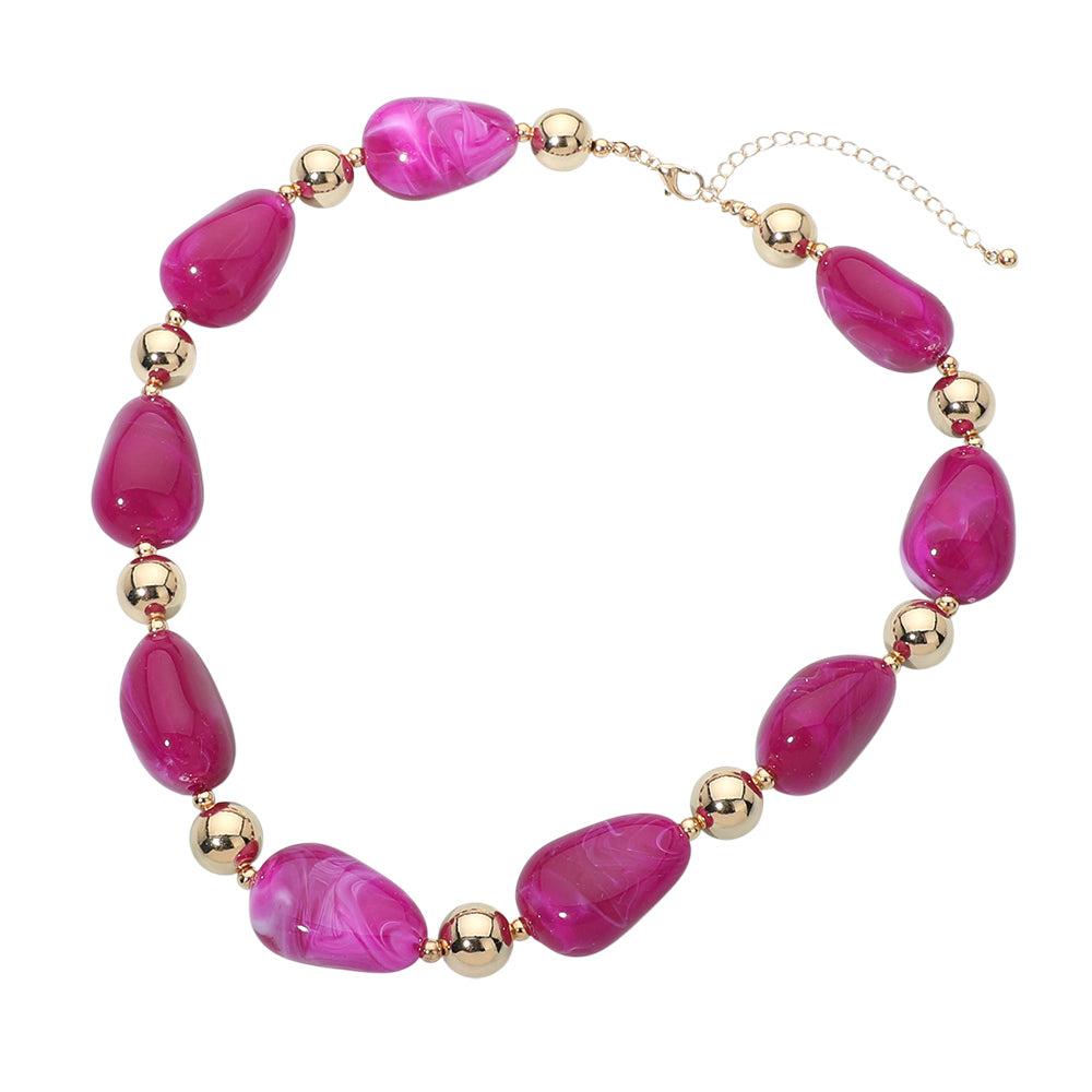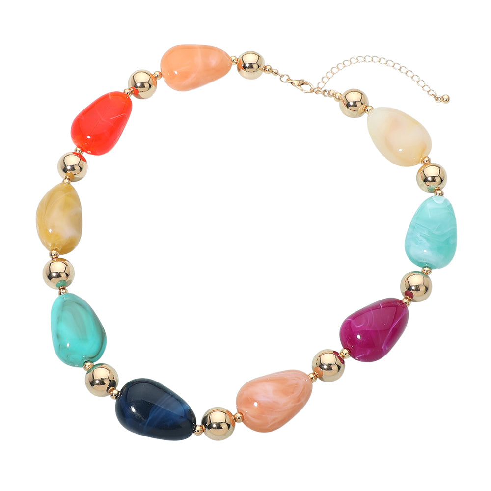 Chunky resin marbled pebble beaded necklace. Designed with bold marbled beads that create a textured, eye-catching look. A statement style that adds instant interest to both casual and dressy outfits.