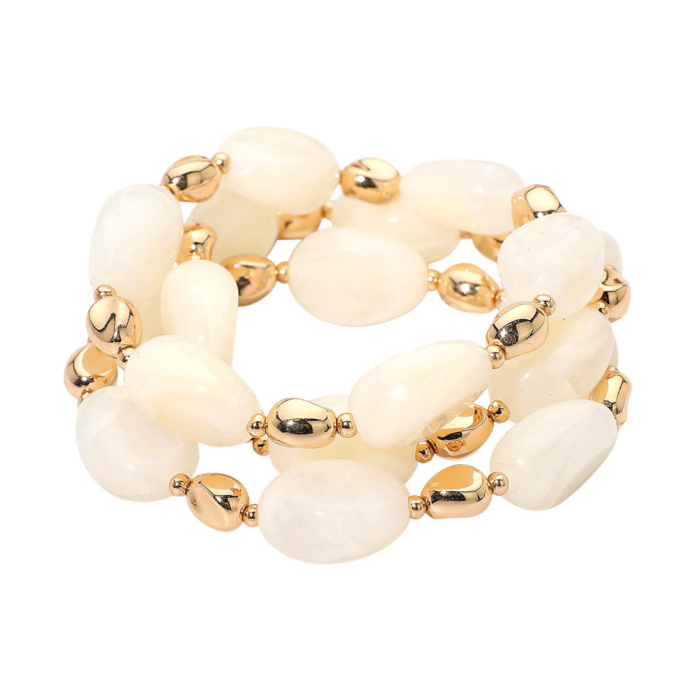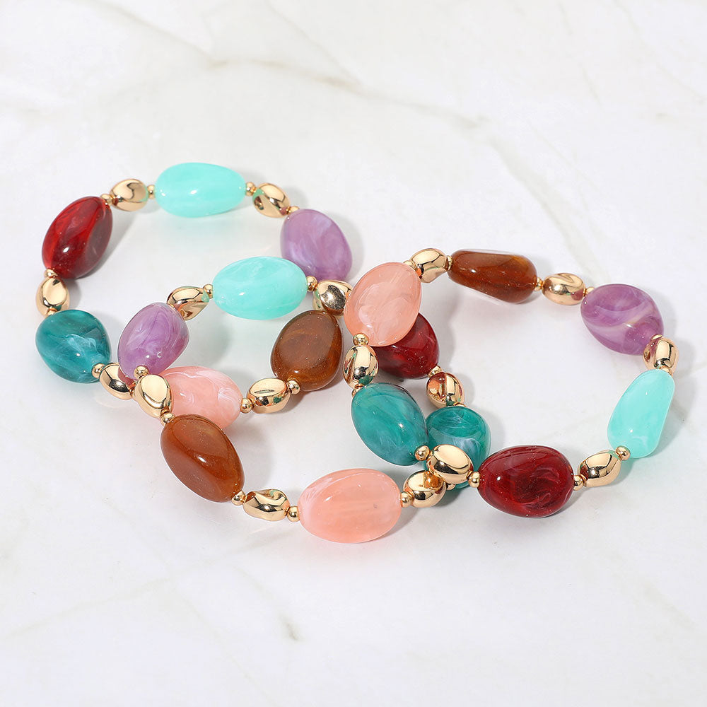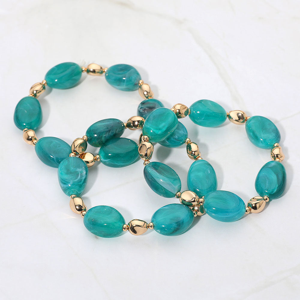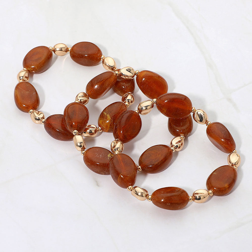A set of three stretch bracelets featuring oval pebble-style beads in a layered design. Easy to wear and perfect for stacking or styling together for a polished look.