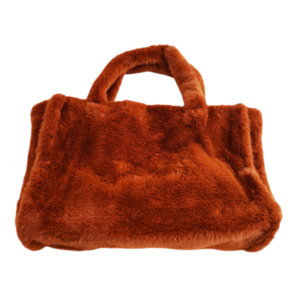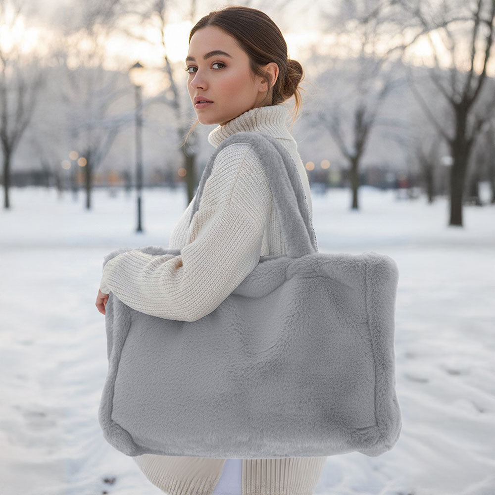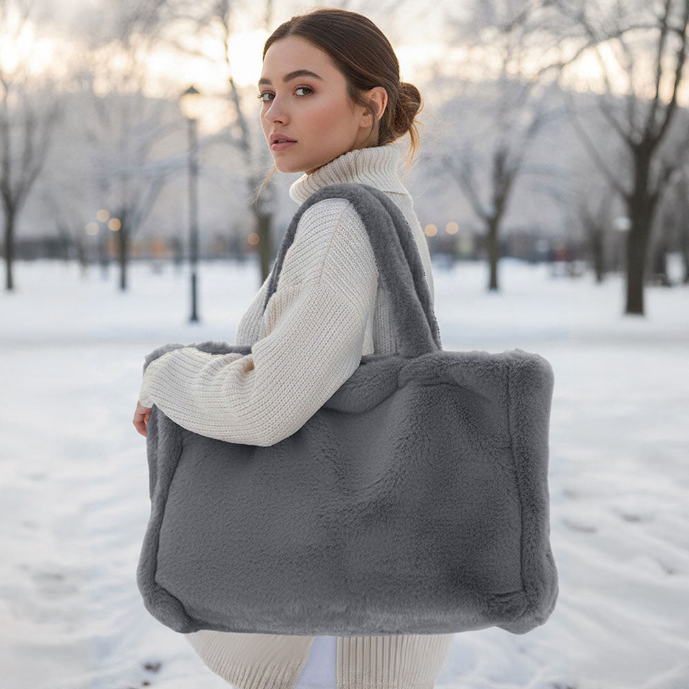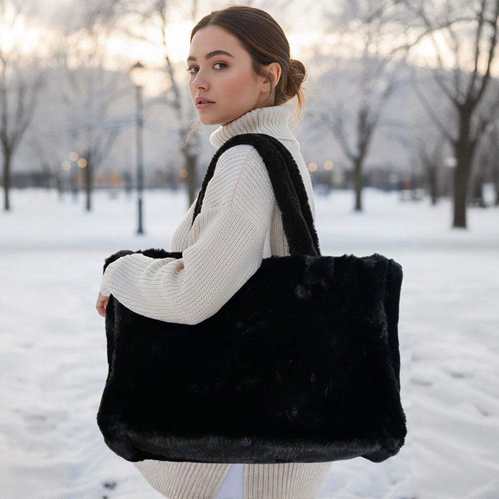 A roomy tote bag featuring soft-touch faux fur for a cozy and stylish look. Perfect for carrying essentials while adding a chic, plush accent to any outfit.