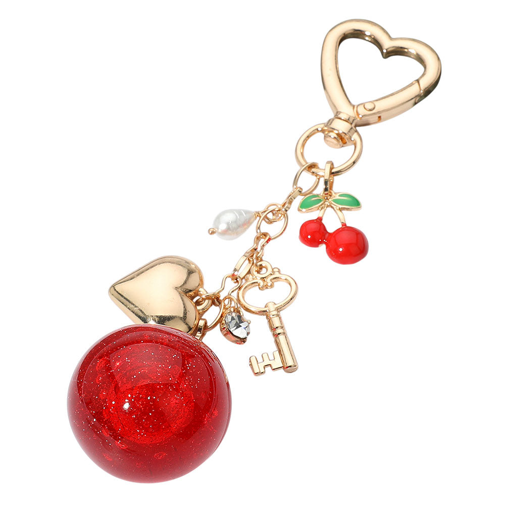 Featuring a playful mix of cherry, pearl heart, key, cross, and flower charms with embellished details. Designed as a versatile keychain or bag charm, this accessory adds a fun, decorative touch while elevating everyday essentials.