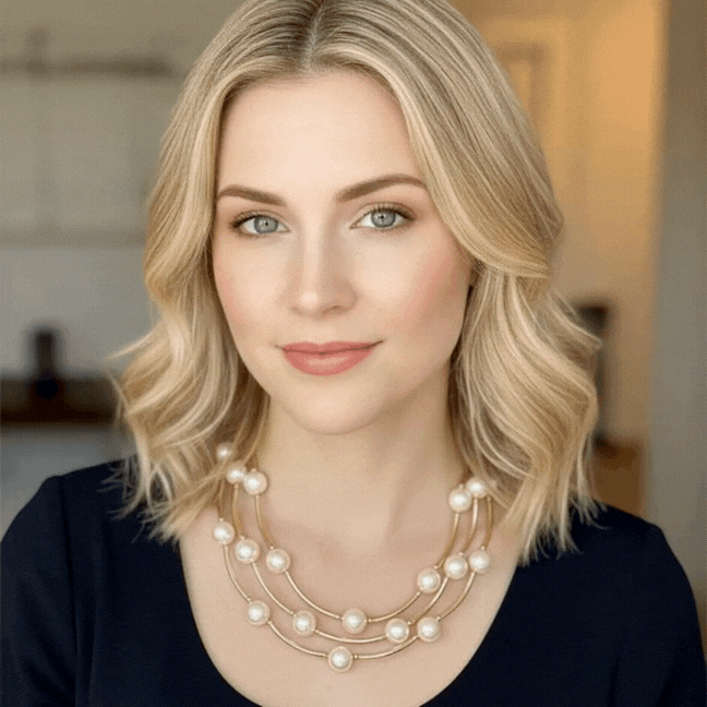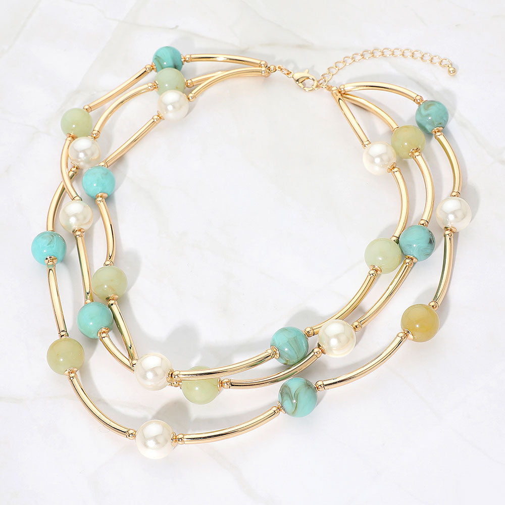 A stylish double-strand necklace featuring pearl balls and metal bar beads for a modern, layered look. Lightweight and versatile, perfect for adding a chic accent to any outfit.