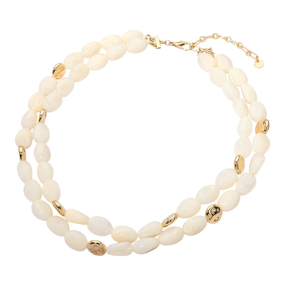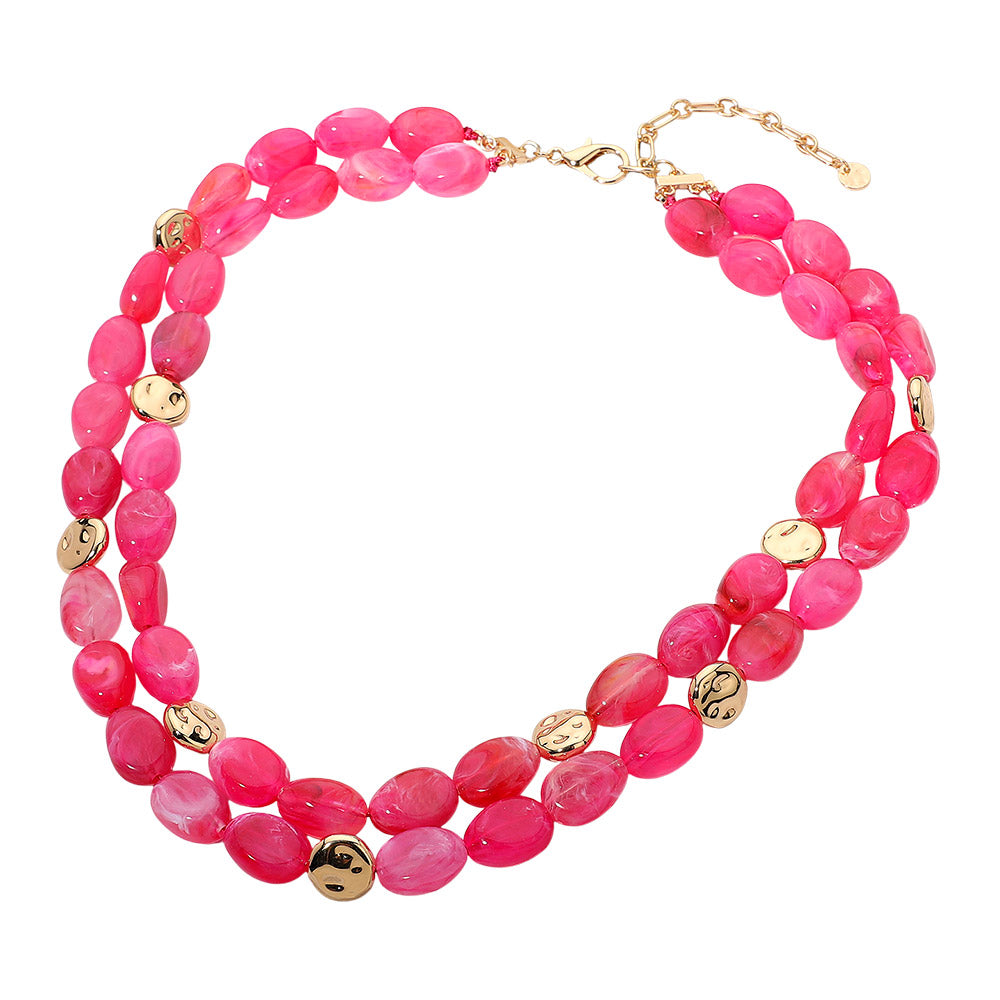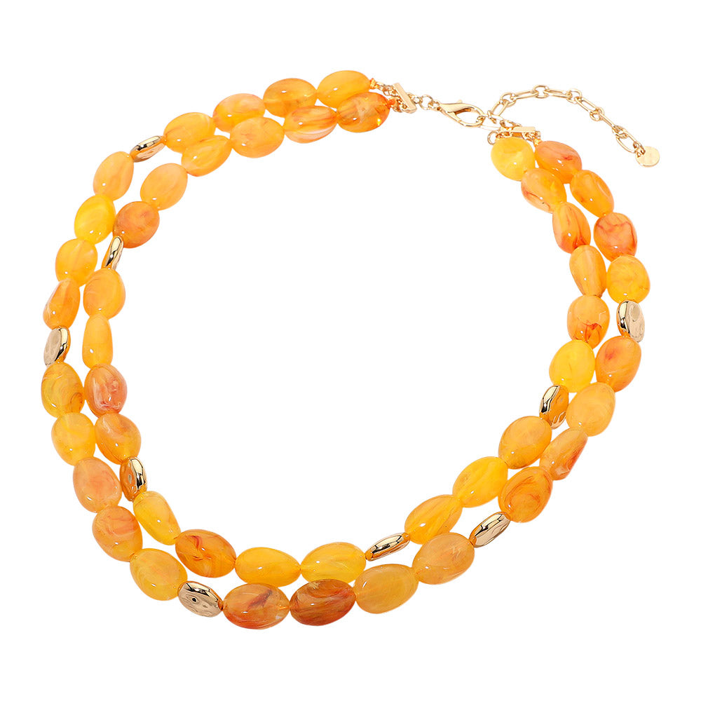 A layered statement necklace featuring chunky oval resin pebble beads for a bold, textured look. Lightweight and eye-catching, perfect for adding a standout accent to your outfit.