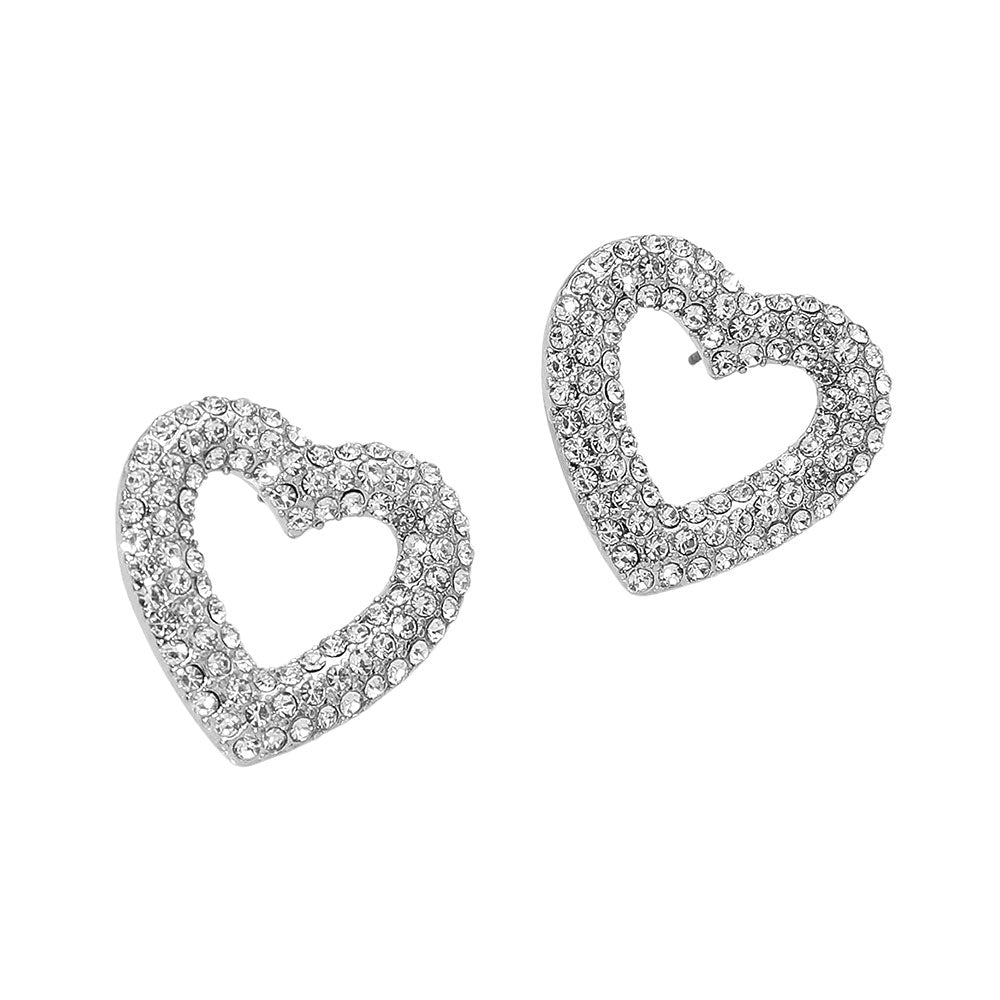 Stone paved heart stud earrings featuring a classic heart shape accented with sparkling stones. Designed with a polished finish, these studs add a sweet touch of shine perfect for everyday wear or special occasions.