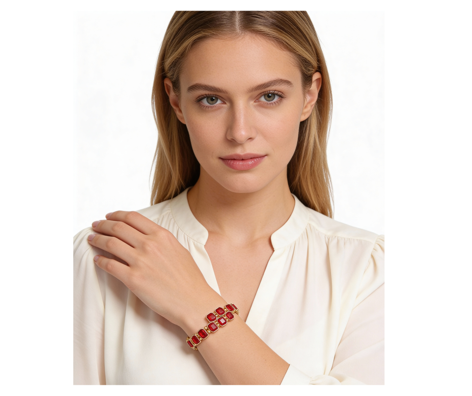 A beautiful bracelet featuring rectangle stone clusters linked together for a clean, stylish look. Finished with an adjustable closure for a comfortable fit.
