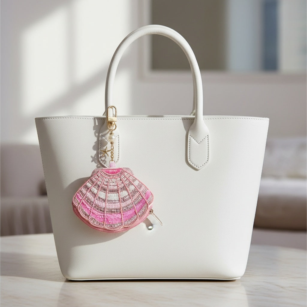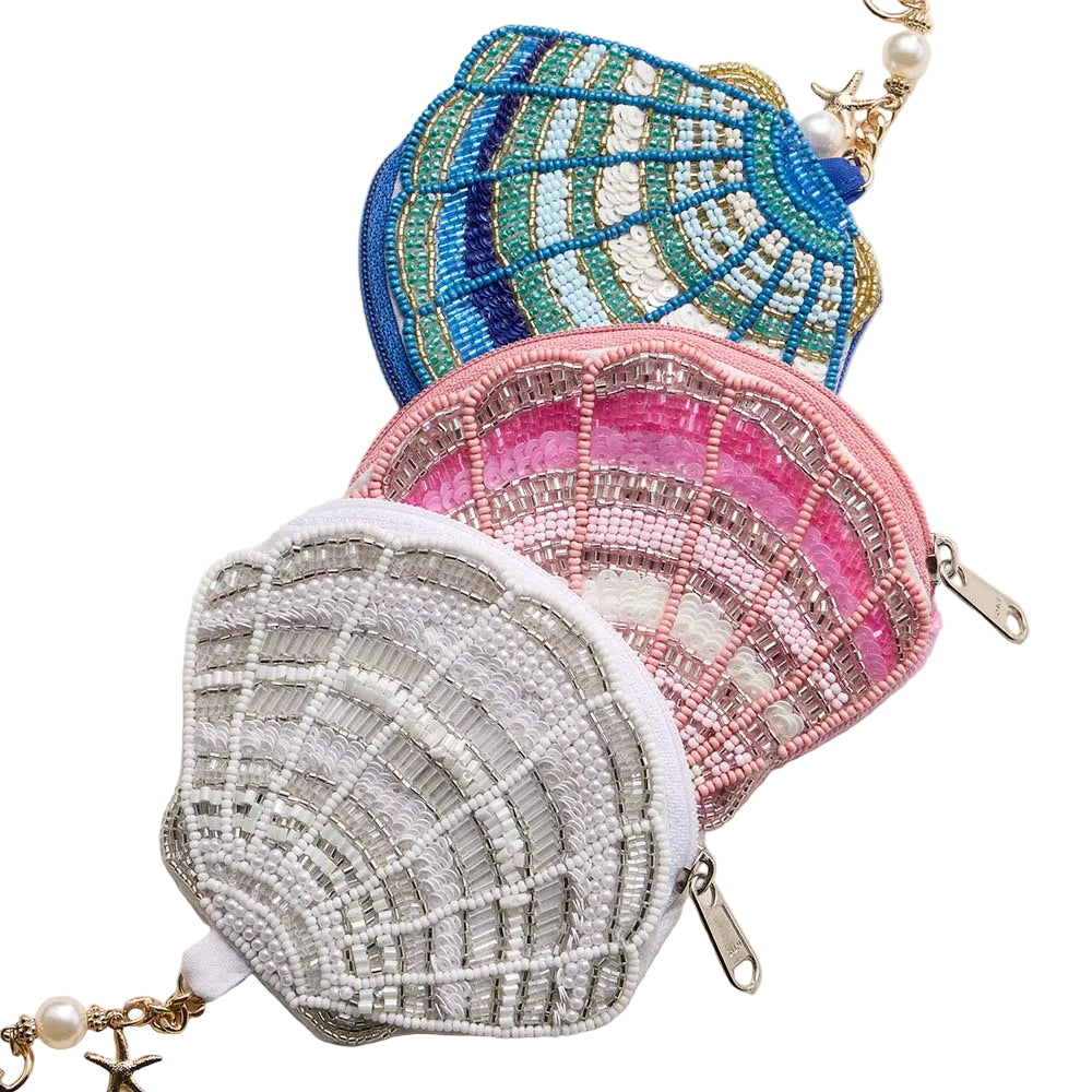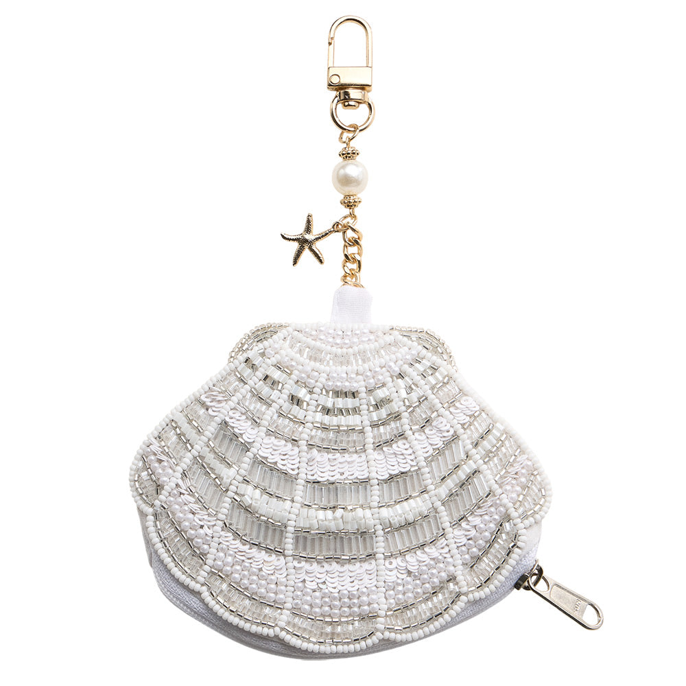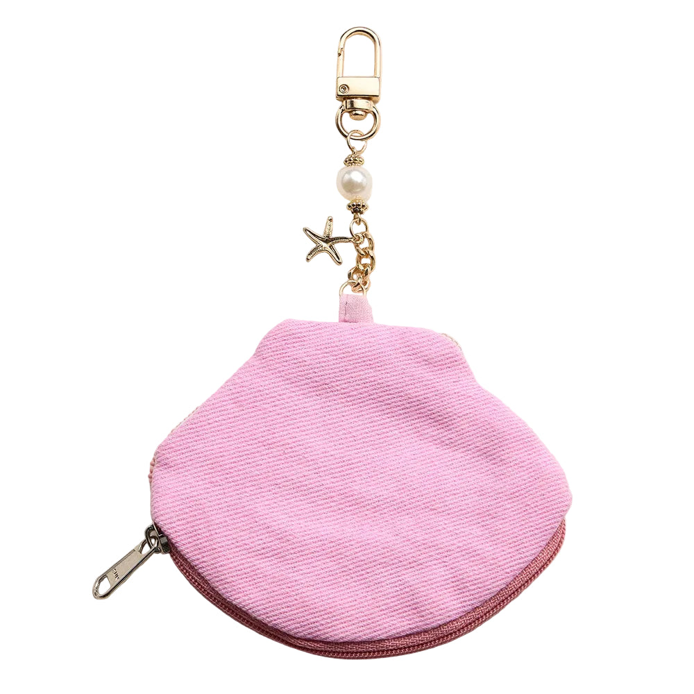 Featuring a starfish charm accented with seed beads and a shell detail, this mini pouch bag doubles as a keychain. Perfect for keeping small essentials like coins or keys secure while adding a playful, beachy touch to your accessories.