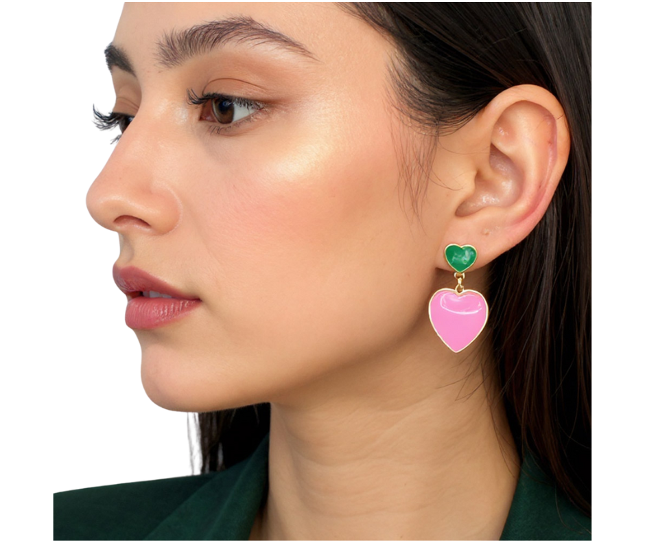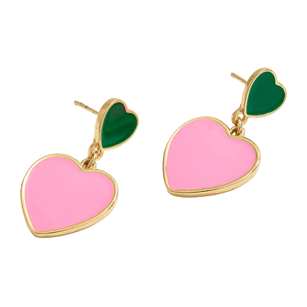 14K gold dipped enamel heart dangle earrings featuring a classic heart design with smooth enamel detailing. Designed with lightweight movement and a polished finish, making them perfect for adding a sweet touch to everyday looks.