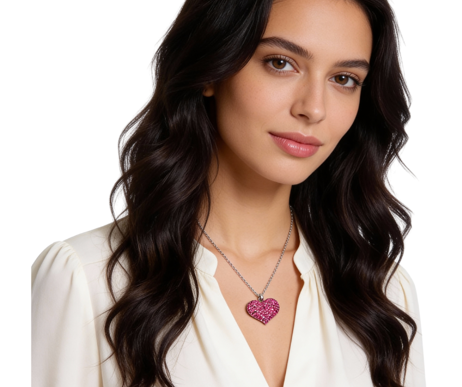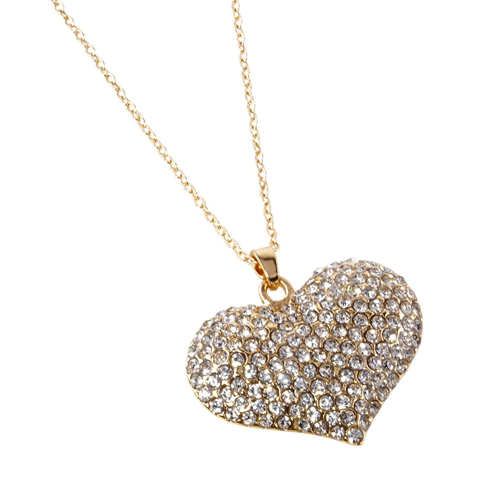 Featuring a heart-shaped pendant accented with rhinestone pavé detailing for added sparkle. Designed with a polished finish, this necklace adds a sweet touch of shine to both everyday and dressy looks.