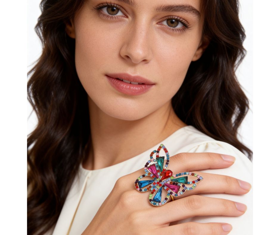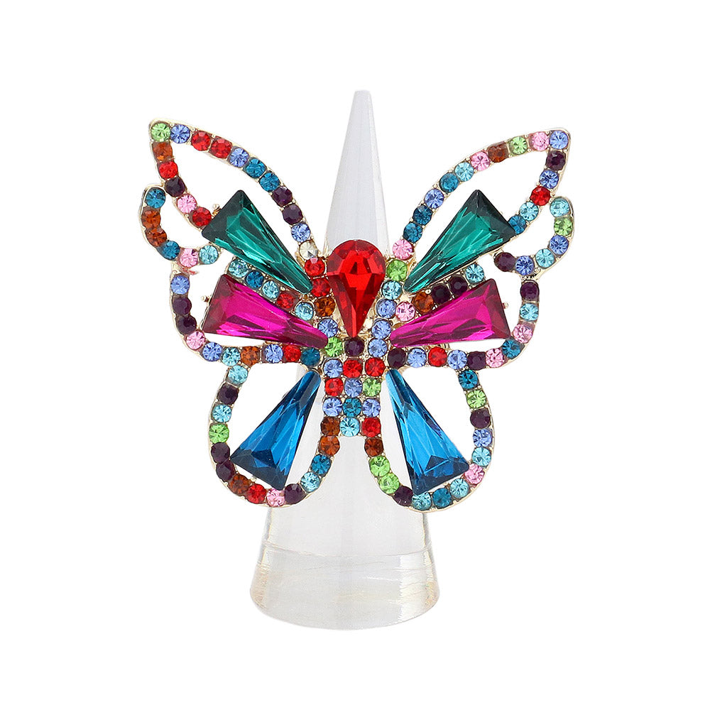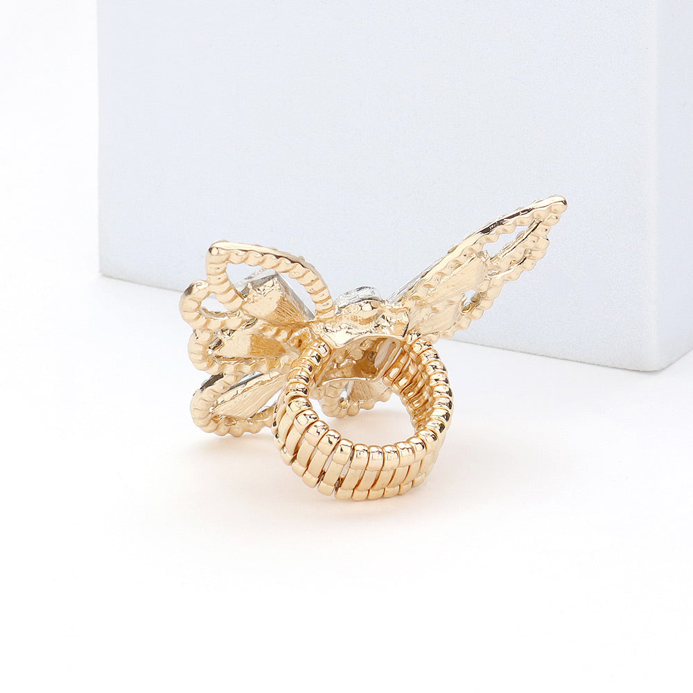 This stretch ring features a butterfly design accented with rhinestone pave for a sparkling touch. A playful and charming piece that adds shine and whimsy to your look.