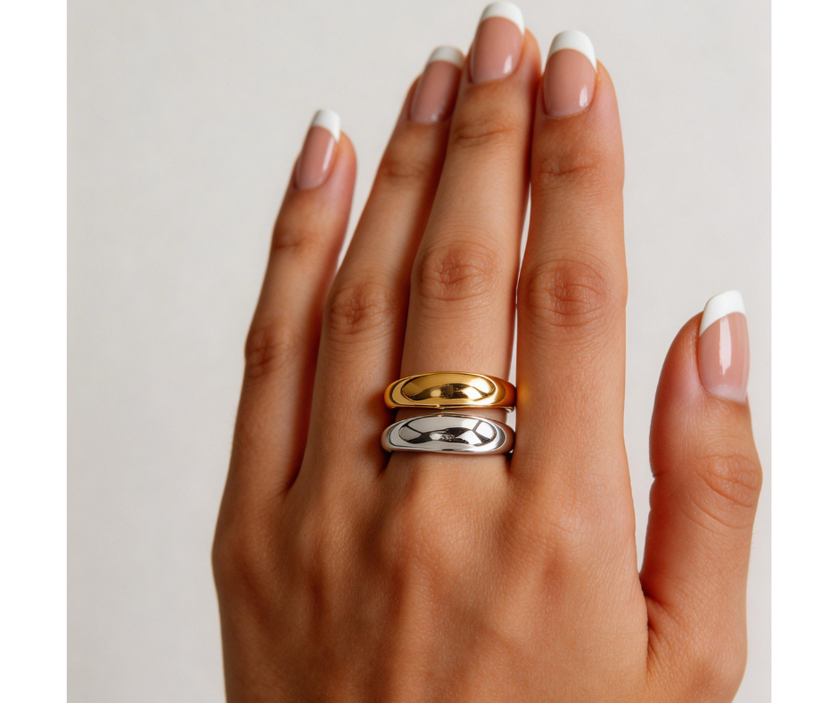 A sleek and modern ring featuring a two tone band design for a subtle contrast that stands out. Crafted from stainless steel, it’s durable, water resistant, and made for everyday wear. The adjustable fit makes it comfortable and easy to style with any look.