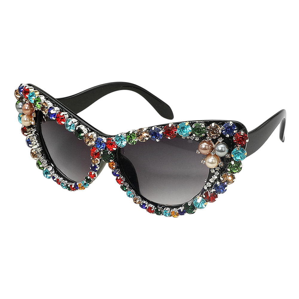 These oversized cat eye sunglasses feature an oval frame design embellished with sparkling crystals for a bold, eye-catching look. The sculpted shape adds a stylish edge while the crystal details bring standout shine. Perfect for elevating your look with a glamorous, fashion-forward touch.
