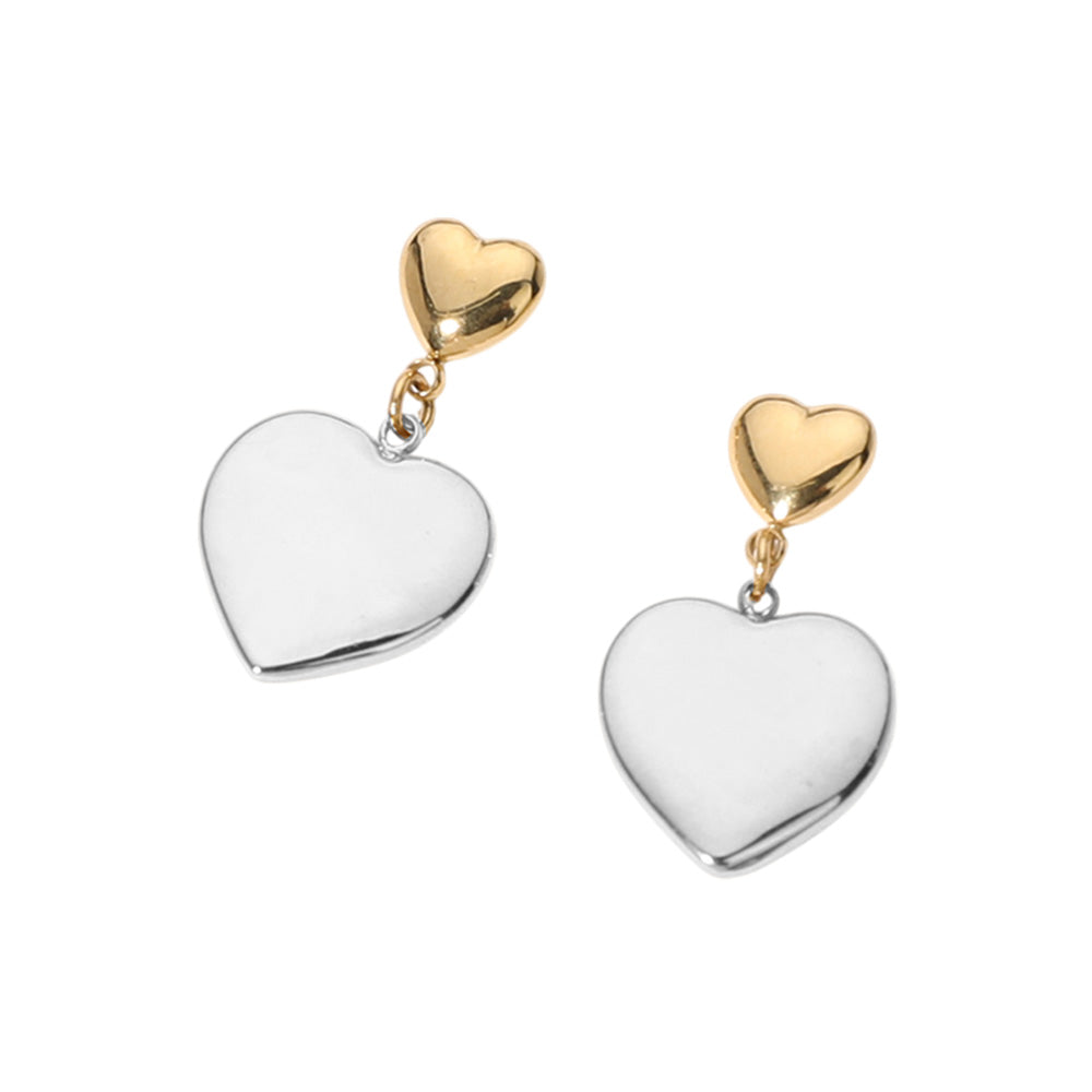 Crafted with a polished finish, these earrings feature a charming heart drop design that moves beautifully with every wear. Available in durable stainless steel, they are lightweight, tarnish-resistant, and perfect for everyday style or gifting.