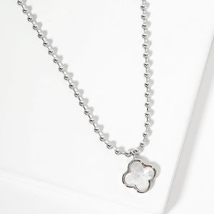 Add elegance to your look with this stunning gold-dipped quatrefoil pendant necklace, featuring a natural stone on a unique bubble chain. Perfect for both casual and dressy outfits, this versatile piece brings a touch of sophistication and style to any jewelry collection.